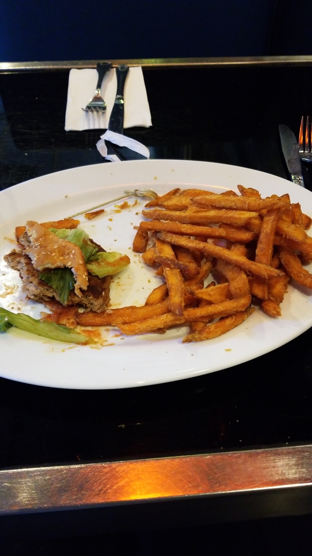 They have dine in with Covid vaccine proof so that's a plus, they have booths that fit 1-2 people and 4 seat dining tables and the server was nice, that's about all the pros. There was a fly in here and as I currently look down at my turkey burger and sweet potato fries all I can think about is how bland the food was. I dont know what happened to the seasoning and I had very little faith they would do it properly if asked so used the salt, pepper and ketchup on the table. Managed to eat 2/3 of the burger, hardly made a dent on the fries, they give you a lot which would of been great if tasted better. Couldn't force anymore down, so taking a L with this lunch. Really wanted to try their desserts but I'm afraid it's just as bland so didnt give it a try and this fly is giving me trust issues. Maybe their other menu items taste better cause I see 5 star reviews, i guess it depends on your taste buds. An older gentleman seems to be enjoying the food behind me so to each their own. But for me it's a no, even $11 is a lot if the food comes out tasting as bland as paper and a fly you constantly have to swat away. Only salvation was the tap water, wouldve hated paying more for a drink.