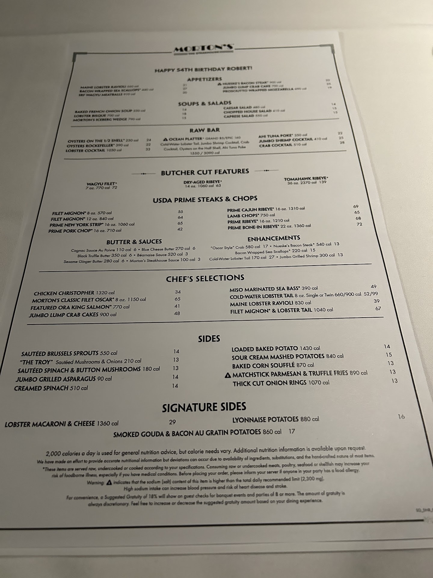 I planned a three-day staycation in Lower Manhattan for my husband's 55th Birthday Weekend. The reservations were made nearly a week in advance. I let them know we would be celebrating his birthday and that it was a special night. I also told them that my husband is diabetic, but still enjoys great food, with the appropriate modifications. They were kind and assured me that we would be very satisfied with a delightful evening. Kayleigh Kehme was the person I spoke to more than once. She was very sweet and helpful. We entered the restaurant through our hotel lobby (Club Quarter at World Trade Center) and we were warmly greeted by Kayleigh. She was as lovely in person as she was over the phone. She escorted us downstairs to our table, where the menu had my husband's name and birthday emblazoned on top of both menus. Our waiter, Patrick, who was welcoming, was fantastic. He came to the table, fully prepared to make delicious, diabetic-friendly recommendations. He was friendly and knowledgeable about everything on the menus. He was also super attentive. Our food and drinks were amazing. When we were full, we decided against dessert. We are also being careful, health-wise. Patrick still came back to the table with assorted berries, to complete the birthday feast. What a great touch. Very much appreciated. My husband and I had a terrific, celebratory, and romantic, evening. My husband was elated. So was I. The Morton's crew went above and beyond to please us. They certainly exceeded our expectations. This was a great, dining experience/date night to commemorate an important milestone. We smiled all the way back to our hotel room. That trip was quick and very convenient, as we took the restaurant's elevator straight to our room. I highly recommend...