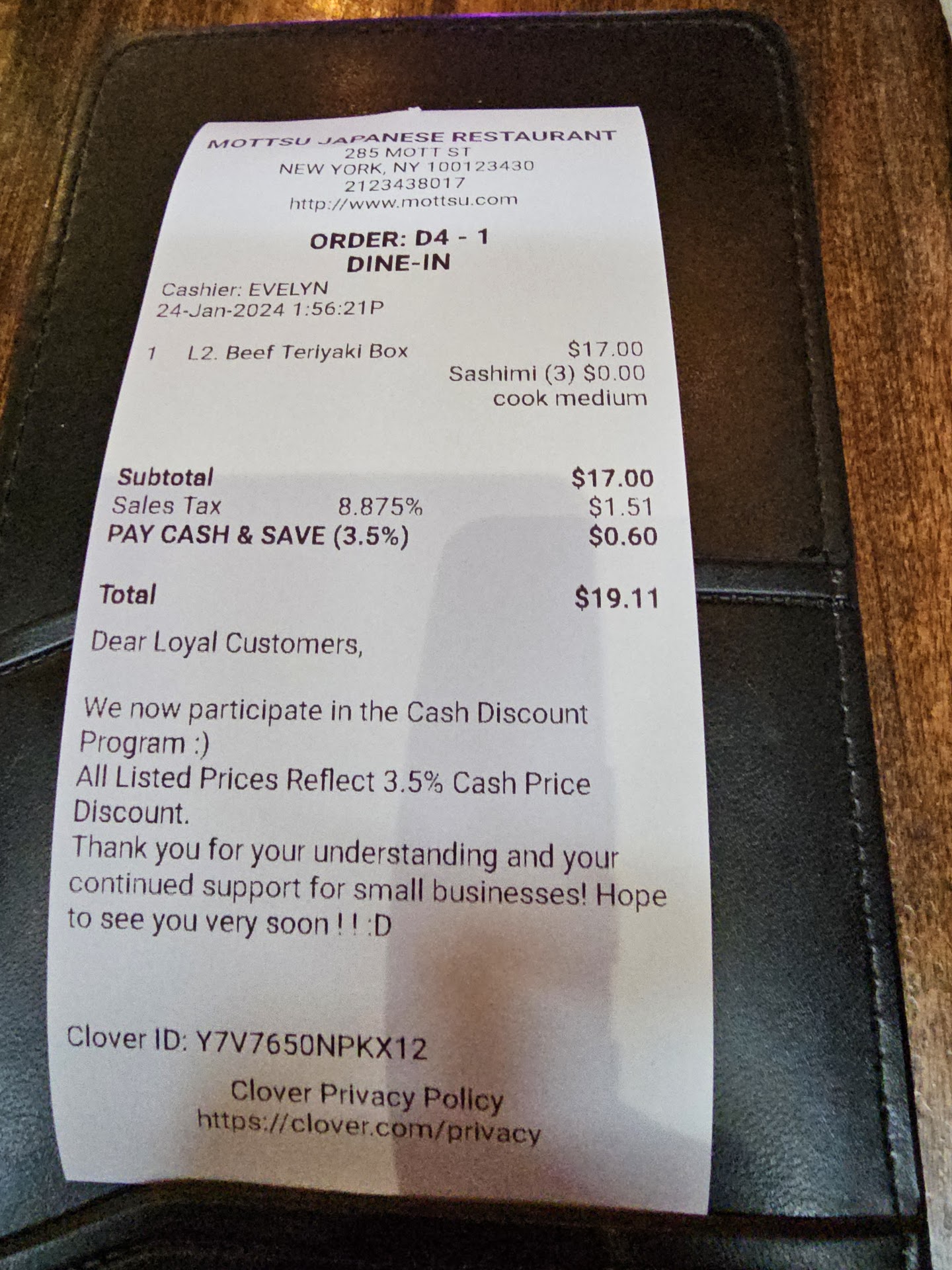 This restaurant is on its last legs. It once had a great staff and made terrific food, even during the pandemic! I stopped by today for the beef teriyaki lunch special, I wanted the beef to be done to medium my side was sashimi. The soup and salad were fine, hard to ruin. The bento box came and the waitress knew it was bad before she placed it in front of me. Normally the beef is sliced and placed to look like a single piece of steak with a little separation, not my plate of food! it looked like a bad stir fry and every piece of meat looked like they came from different cows and every piece was so over cooked, my leather boots looked softer! Was the kitchen really busy, you ask me? Only one other person entered after me and he order the 3 roll sushi special! I mentioned to the waitress I ordered my meat to be cooked medium and she blamed a busy kitchen! I told her I would reluctantly eat it because I didn't want to wait longer for another piece to be cooked and she seemed pleased. But as I tried to eat, I also tried to assemble the meat as one piece and couldn't! I called her over and asked if it was leftovers, ( that would explain why it was dry, over cooked and tasteless) , she swore it was made to order even though it was overcooked! Sashimi was my side and it must have been a new rookie because each slice of fish was thick enough to be 2 slices, that was a loss for the restaurant but good for me!. A refill of tea didn'tarrive until the check came and as she took away the bento box, I showed the waitress that the pieces of meat weren't from the same steak, the thickness and widths of the pieces I left in the box were all different! She was annoyed I noticed but she said nothing. I can never recommend Mottsu ever...