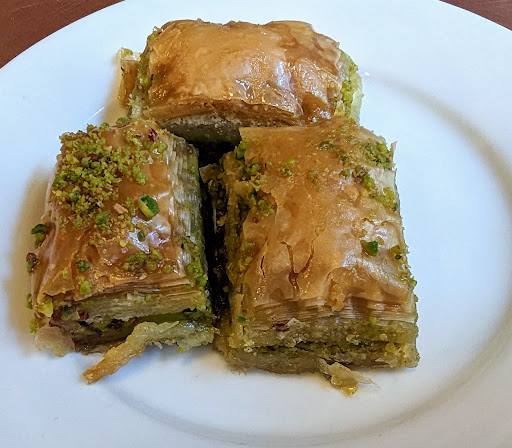 We also shared a Baklava for dessert, which was a rich and sweet pastry made of layers of filo filled with chopped nuts and covered in honey. It was a perfect way to end our meal, as it was light and crispy, with a hint of spice and citrus. The portion was generous and we enjoyed every bite.