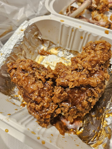 I ordered to go and the sauce from the wings spilled over my entire bag but I'm sure its not intentional. Holes in the container isn't the best idea but getting home and trying the wings, I am shocked at how GOOD they are. Most the sauce spilled but they were still drenched, the chicken is super crispy even with all the sauce. The wings are cooked thoroughly too. I'd give it a 9.