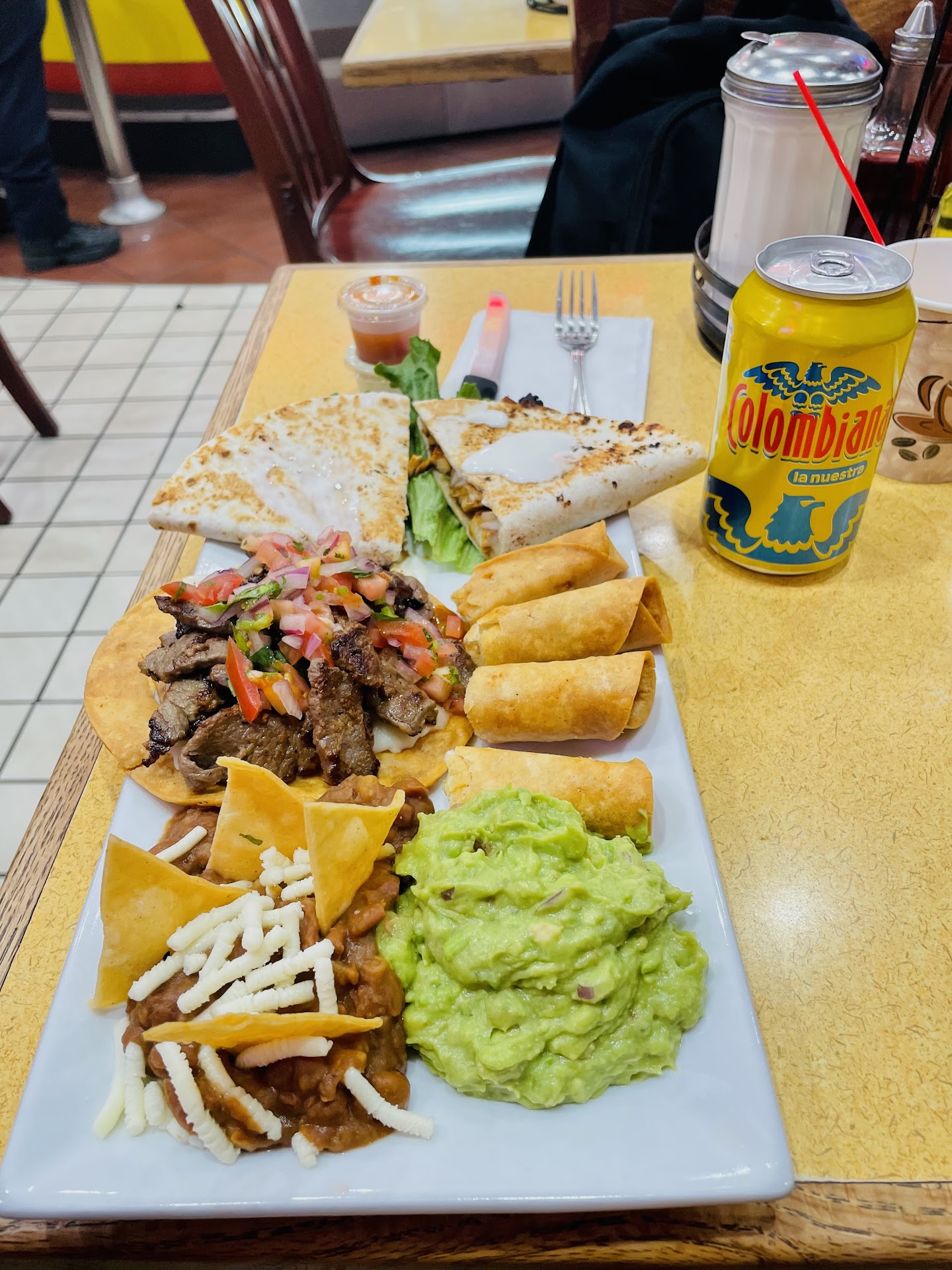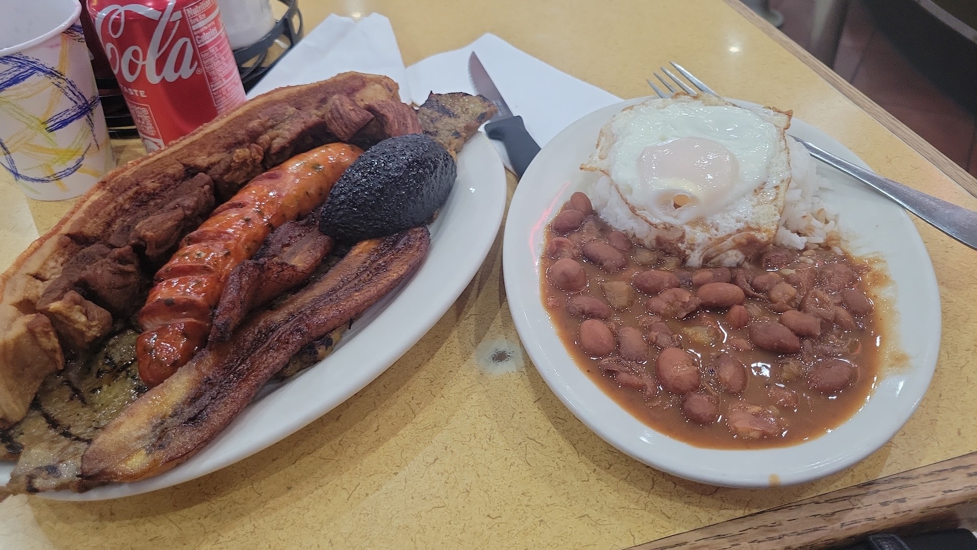Atmosphere is nice...it's very busy..the lady that took my order was very nice..she asked my name and put it on the receipt so that they would call my name when the order is ready...a different young lady someone's name and no one answered so she looks at me and asks if that is my order..I respond no...it is not...i said my order is a Bandeja paisa...so she goes about her business...about ten minutes later she gets another order ready and puts it on the counter...and she walks away...then she walk by and nothing...I ask her excuse me is this my order?...she says yes and I ask don't you call the name when the order is ready she looks at me like she's constipated...and walk away...so the food was good...but they must emphasize to the workers that even if they are constipated lol they should always be cordial and polite to the customers...other than that I did not mind the long wait and the food was good..love the bean the steak was cooked nicely the pork delicious...I definitely will...