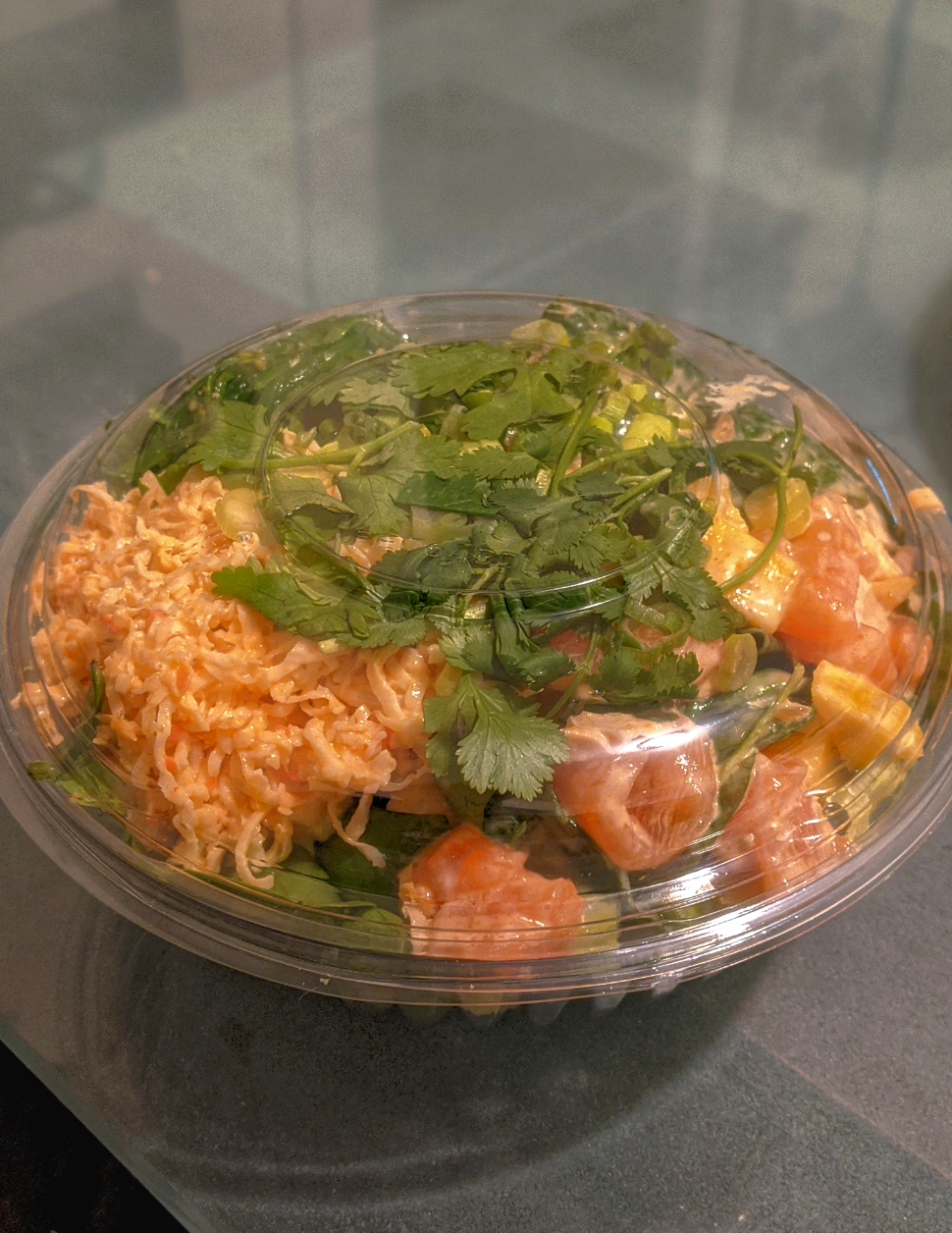 Read moreNever been here before, Just got a poke bowl with salmon and a passionfruit green tea. First thing I noticed was how large the bowl actually was, which was a nice surprise. It was a build your own type of bowl and they had a large selection of add on to choose from. I think they had a chicken option for those who aren't into fish. The bubble tea is in a weird cup with a coffee cup style lid with a large hole on one end for the straw, which I thought was interesting. Overall it was a great meal. It was filling and the fish was very fresh. The bubble tea was pretty standard, delicious. The counter staff was very nice and they had my food ready within 15mins, as promised. Excited to go back and try a smoothie though it'd be hard to not get the same...