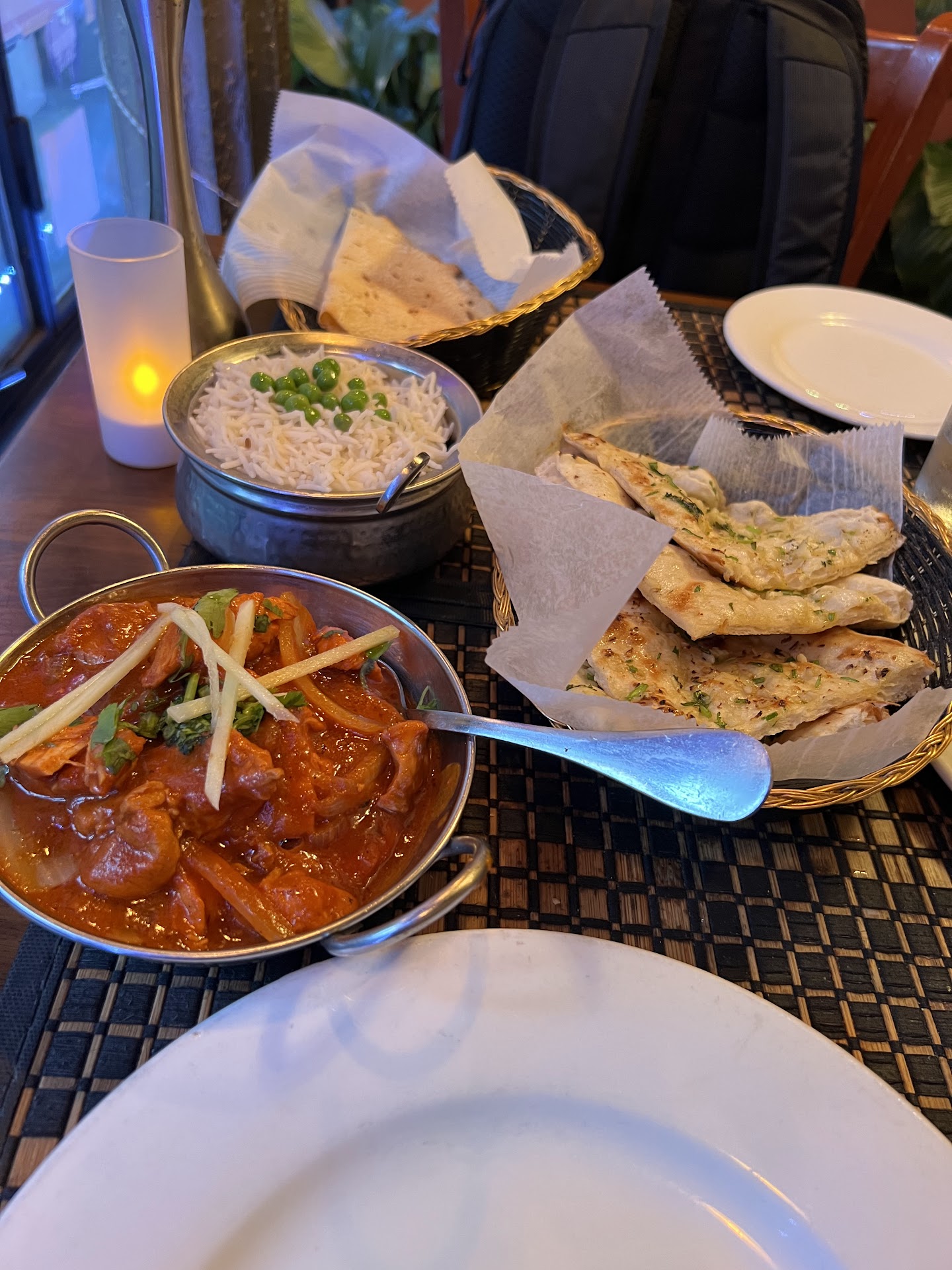 The Garlic Naan deserves a special mention — it was fluffy, fragrant, and the perfect companion to the curries. For dessert, the Gulab Jamun was a divine ending, with just the right level of sweetness.