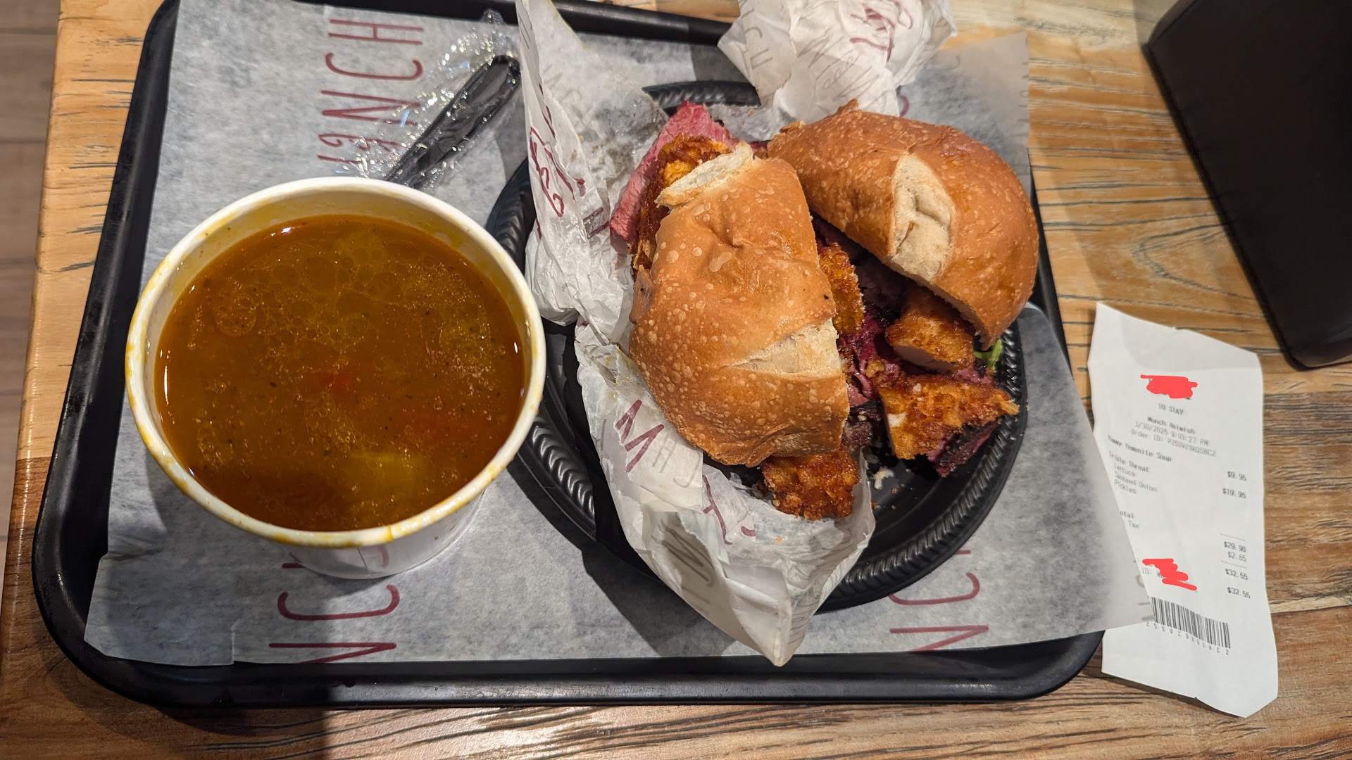 Read moreI got a schnitzel sandwich and was a a bit disappointed it was ok but the freakin sandwich is packed like a 2 year old would pack it everything was spilling all over the place-a huge key to a good sandwich is it has to be well packed and unfortunately that was not the case here. Other then that the schnitzel was aiiiiight nothing to come back for. And they give you so little sauce you have to keep coming back to the counter for more. Big breach. Why do restaurants do that? I’m paying an arm and leg for a sandwich just give me a normal sized sauce container for Pete’s sake The service is great though no complaints there we got our...
