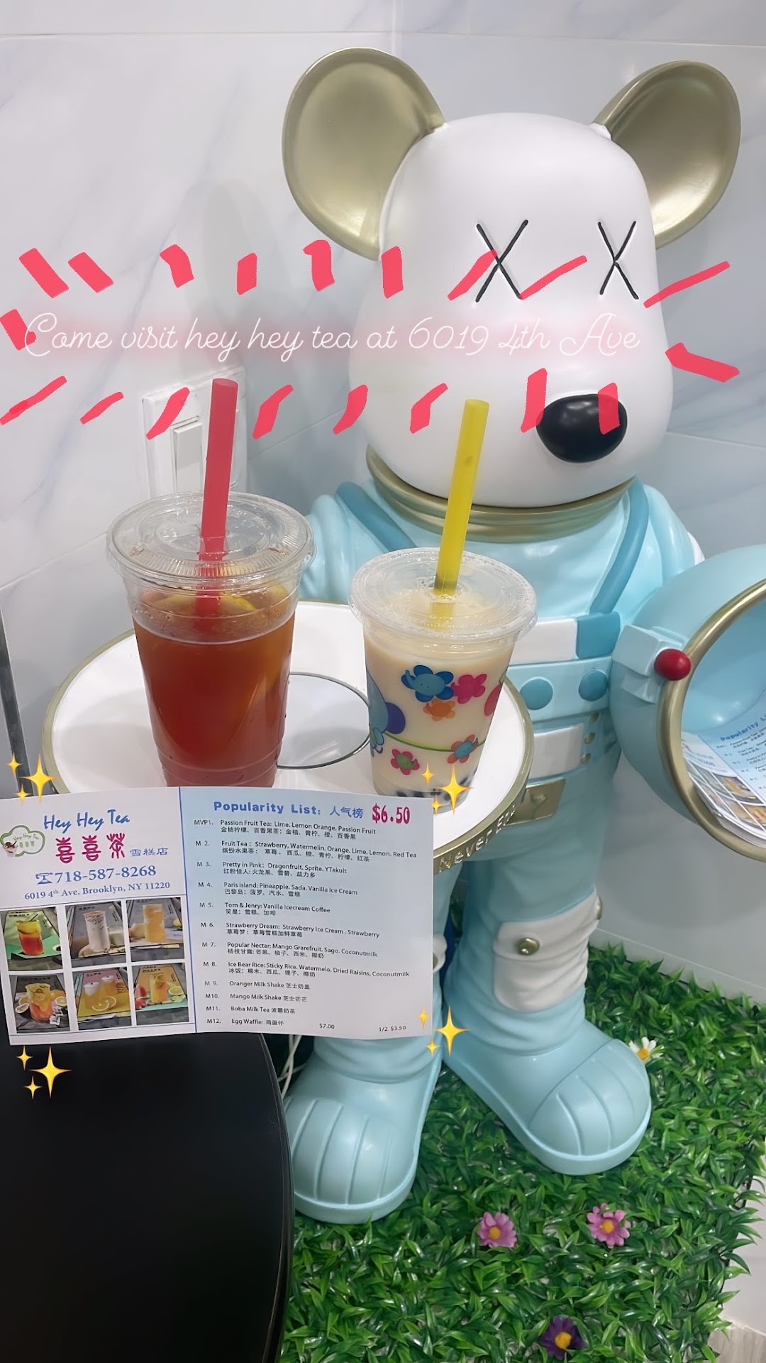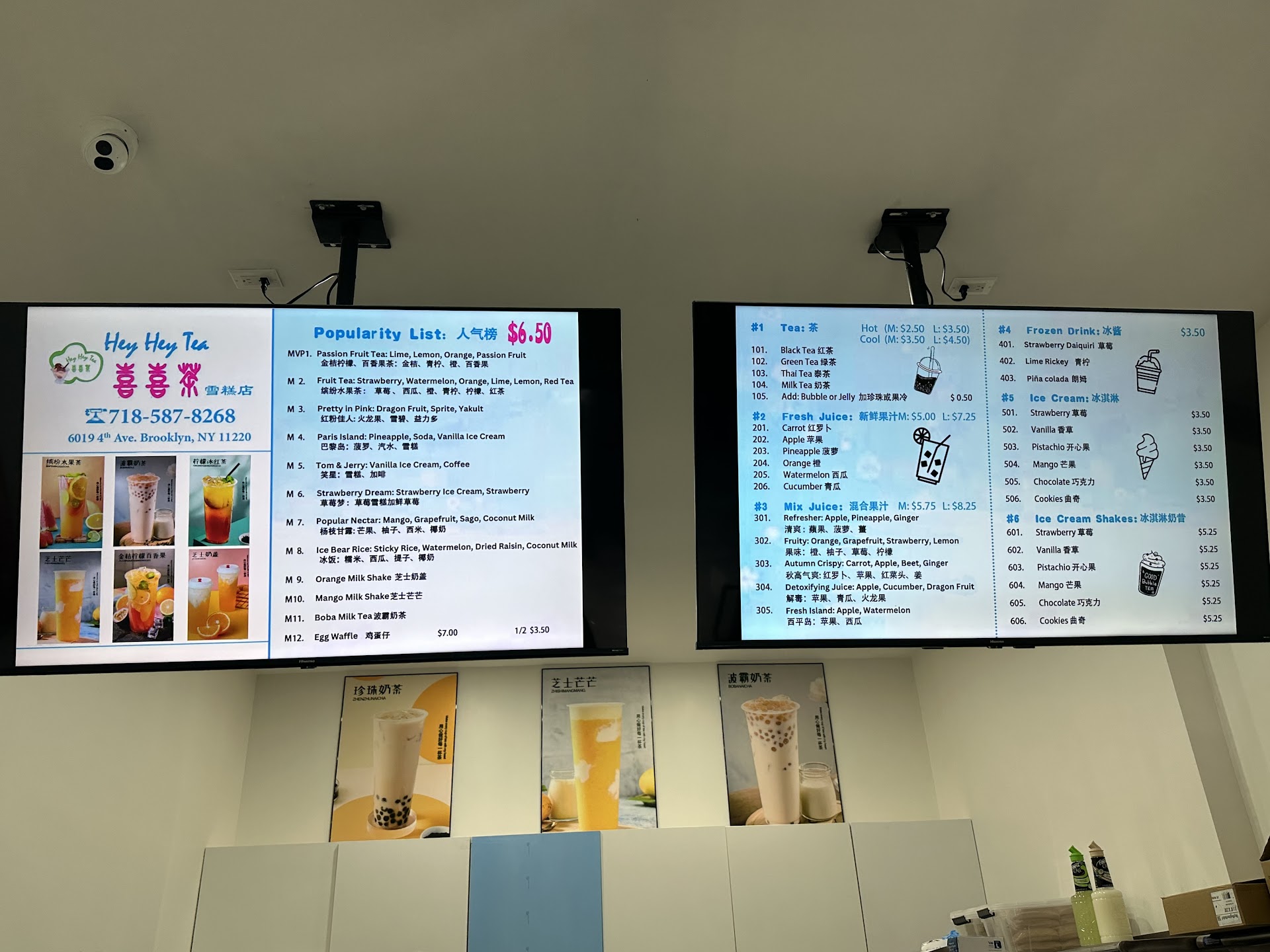 There different bubble teas for sale as well as some ice cream drinks. Everything we ordered was delicious.