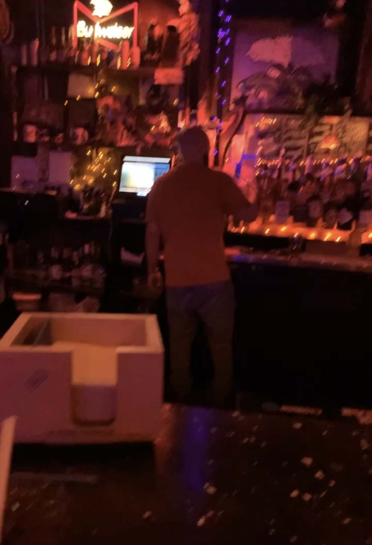 A few weeks ago I was in and needed some water. There was no bartender inside at the time to ask for water but I assumed the big glass container with ice in it was water so I grabbed an 12oz clear cup and poured a cup. I took one sip and realized the water had jalepenos in it. If you watch the video, you will see I poured it out the window a few moments later.