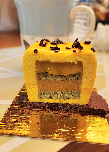 The appearance of the cake was definitely impressive and pretty. The fresh fruits in and on top of the cake were nice. However, the cake itself was a major letdown. It was rough and gritty, and overly saturated with a sugar syrup. Every bite there was a gush of syrup and the cake was so wet. This cake was $45. The service was friendly. Other pastries and cakes in the display looked tasty but I’m unsure if I would return to give it...