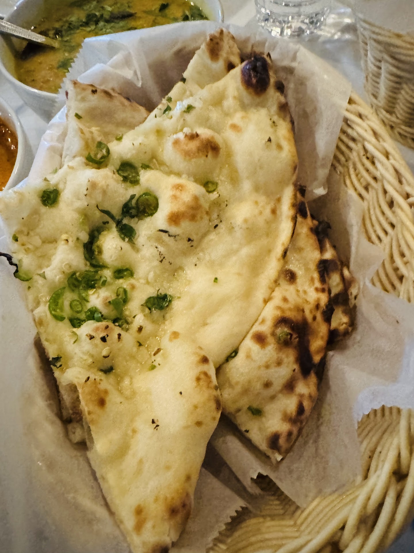 This place has some of the best garlic naan. Freshly made, crispy, light, airy, buttery garlic. I could use a bit more garlic (who couldn't?) but the thin crispiness is insane. My friend enjoyed the cheese naan more. I think the cheese is in the dough and it crisps up differently while imparting a delicious flavor/aroma from the cheese.
