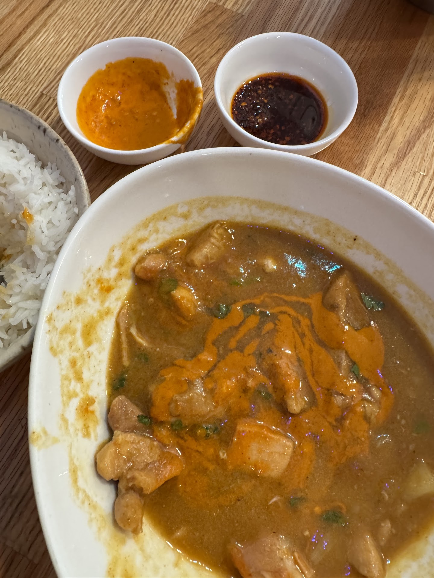 Read moreWow. I just finished my meal, and I’m still stunned. Sooooo good. I wanted a hearty, spicy meal, and I remembered my favorite Indian spot in San Francisco is a mix of Himalayan with flavorful spice, so I stopped by. I told the waiter what I was looking for (spicy and hearty) and he he recommended the Momo dumplings and chicken curry. I only needed one main course and I had read the Momo dumplings may not fill me, so I ordered the chicken curry and asked for it to be spicy. It wasn’t. But the attentive waiter checked in with me, and when I mentioned it wasn’t spicy enough, he brought over the Momo dumpling sauce (which he had previously mentioned was spicy) and a chili oil. Holy crap. The Momo dumpling sauce is probably my favorite spicy sauce. I wish I could get a jar of it. The chili oil was also divine, and the heat was perfect. Super kind waiter, cool spot, and delicious food. What more could...
