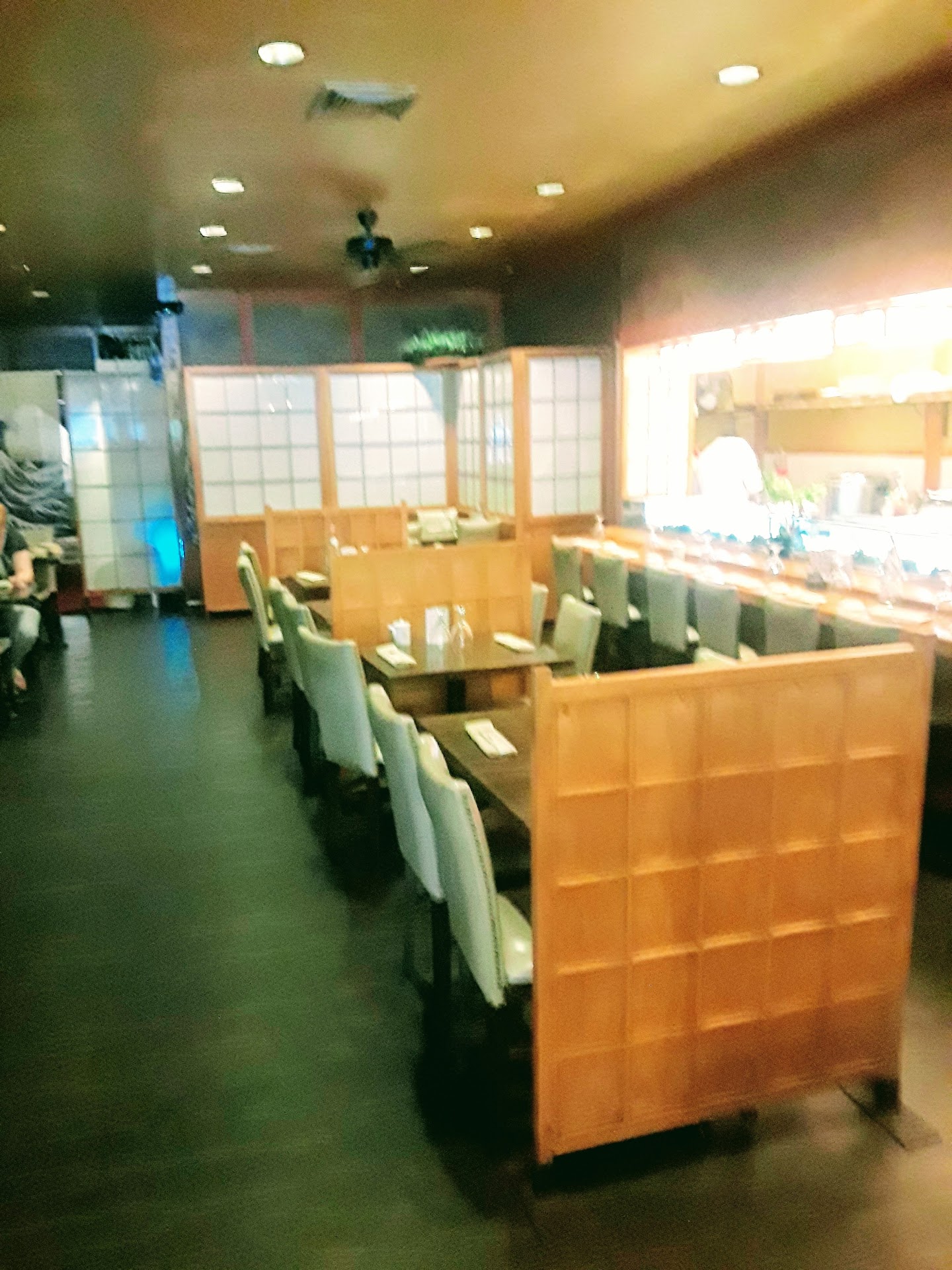 Atmosphere: We got seated in the back with a nice backdrop of art work which looked like waves in a more typical modern japanese art form. It felt a bit private and definitely gives it a nice date like appeal. My one qualm is that walking to the table in the back was a bit tight. The tables are situation kinda close together so I imagine when it's crowded, it will get loud and may be difficult to walk to and from the table if you need to go to the restroom or outside.