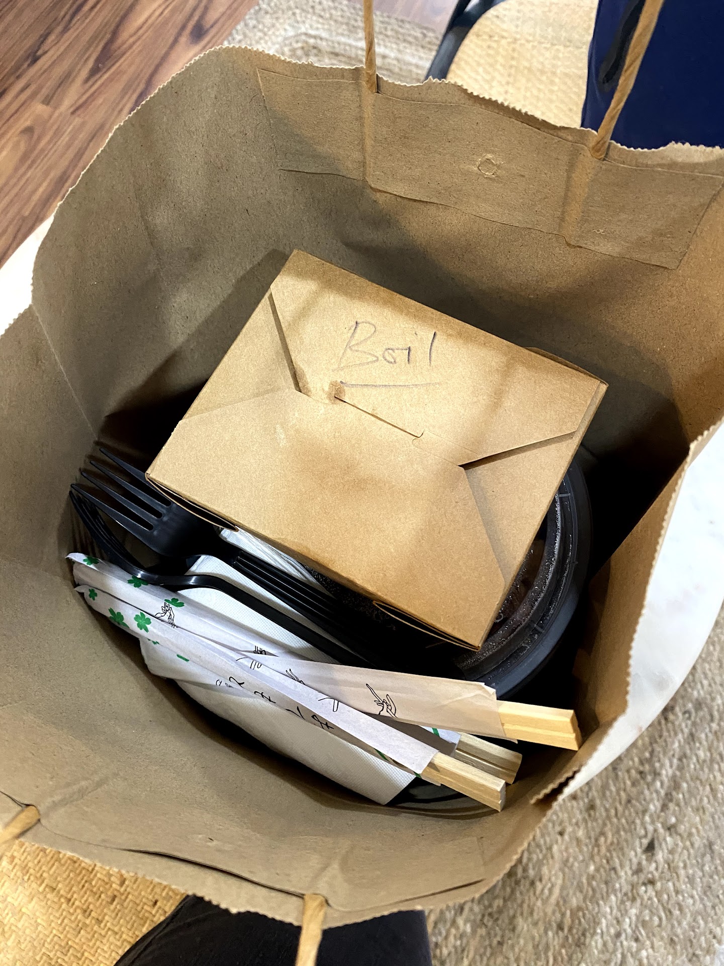 The interior consist of a wide open dining area with a POS kiosk and desk (no tables for my visit as the indoor ban had just been lifted and it was her first week open). The kitchen and prep area was in another room in the back but there is a large see through area. To the right there was a seated / standing area along the wall and near the entrance there is a nice cozy area to eat facing the window (I had chosen this spot to eat at).
