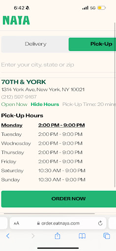 Read moreNaya used to be my go to when I worked in midtown so I was excited for one to open up down the street from me. I’ve been to this location 4 times but my most recent time (12/3) I got bad case of FOOD POISONING from it. I got the chicken kabob and when I ordered it, the counter was out it so the guy told me to wait a few minutes for a new batch to finish cooking. The guy in the back took out the new batch and they put it in my platter. I ate it for lunch around 1pm noticed the chicken was a bit on the pink side but I didn’t give it much thought. It was the only thing I ate all day and around 5pm I started feeling nauseous. One thing led to another and I spent half my night in the bathroom. I will never eat from this naya again if they don’t take food safety seriously. It’s...