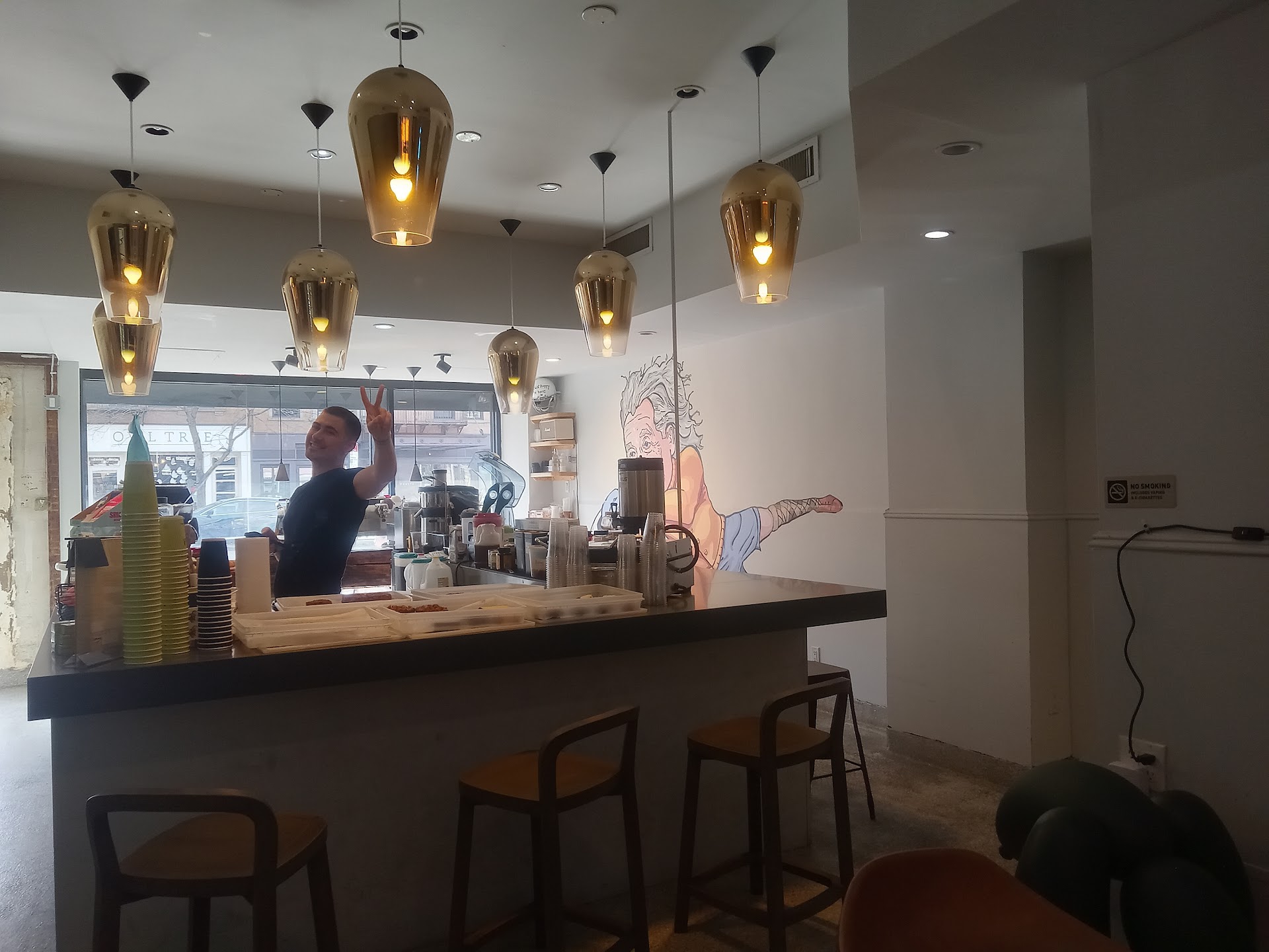 After going to their other location on Lincoln first, to learn they do not serve smoothies? I walked over to this Flatbush location. It was an extremely confusing visitor experience. Signs plastered absolutely everywhere about various drinks they sell in hard to read text. There was no greeting upon entry. After several minutes looking around confused, I asked where the coffee drinks menu was, the barista rudely pointed to 4 different signs (soâŠokayâŠthen itâs not obviousâŠ.). Ordered a cold brew in the end bc I still couldnât translate all the stuff going on. It tasted like it was brewed several days prior. The smoothie was basically just water with an unnatural blue tint to it and ZERO fruit. Not sure what they put in it, but I couldnât finish it.