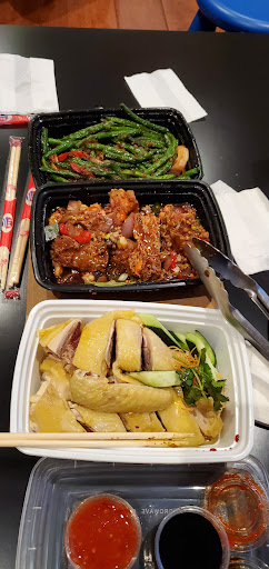 The Hainanese chicken is pretty much flavorless and surprisingly tough. You absolutely need both sauces that accompany the chicken in order to eat it. You can probably get bai chi zhi from any Chinese BBQ place and it'll be similar as long as you have the sauces. 3/5
