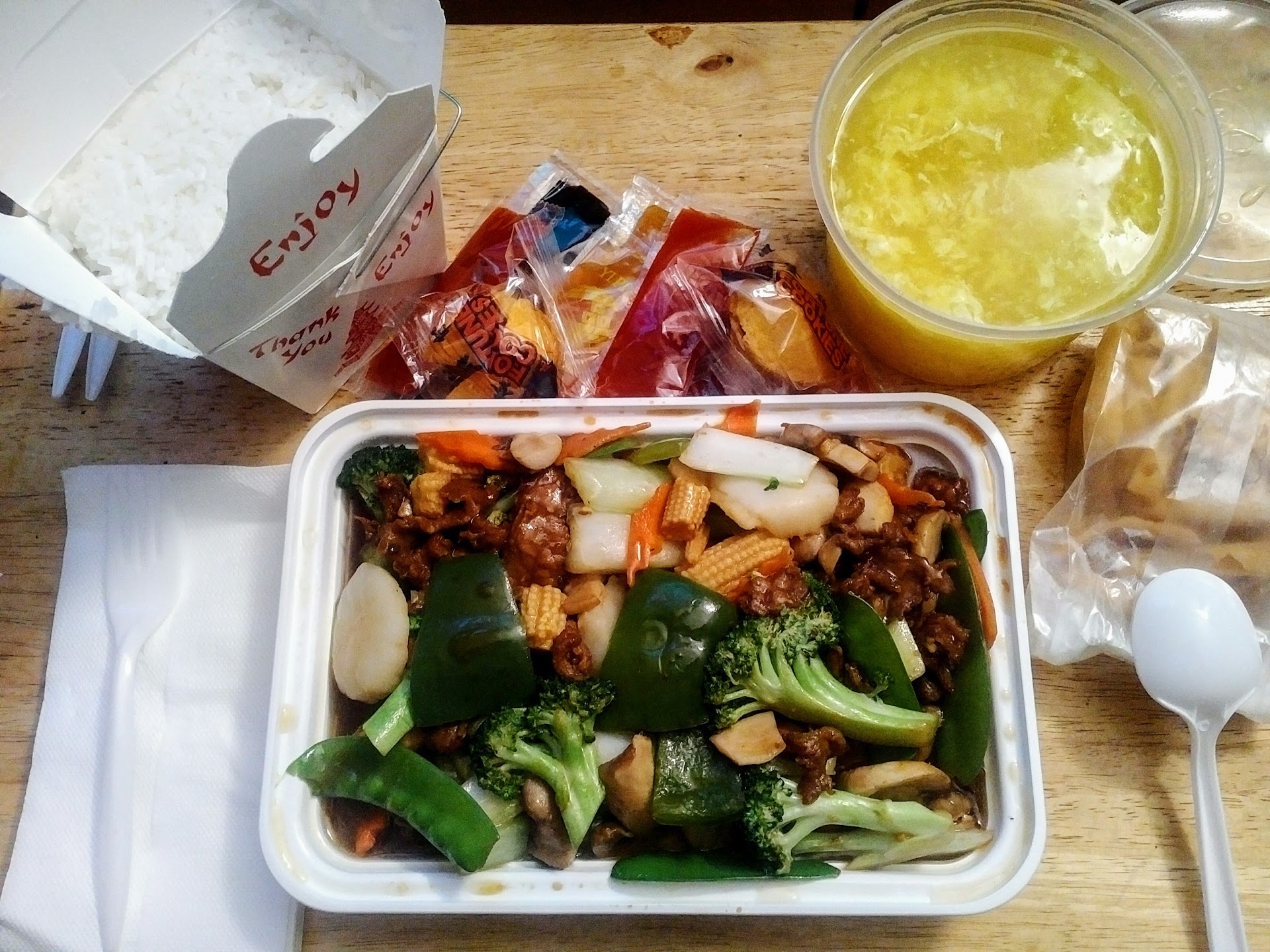 As to my rating, I would have given it 3 stars if if was okay, around my expectations for average takeout. 1 star would have been if I deemed it inedible. The 2 stars is because I ate it, but I did not enjoy the meal. Service was quick, but the food was prepared in all the wrong ways.