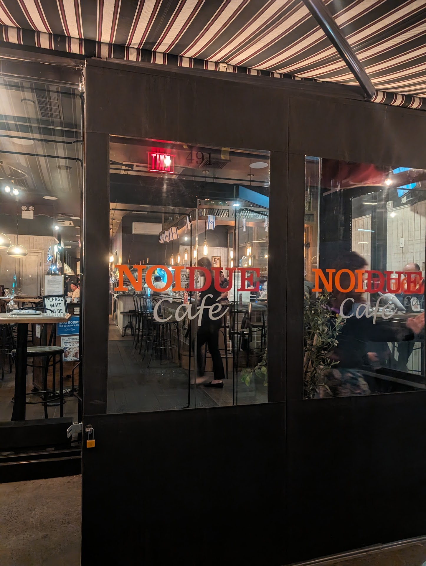 The restaurant next door at 141 W. 69th. Street, Noi Due Carne is owned by the same proprietor and has an entranceway set off the sidewalk so it would be better to conglomerate outside there while you wait in the elements for a table. This way, you will not be blocking a residential entranceway or the sidewalk either. They even have a couple of chairs in front of 141 set out...