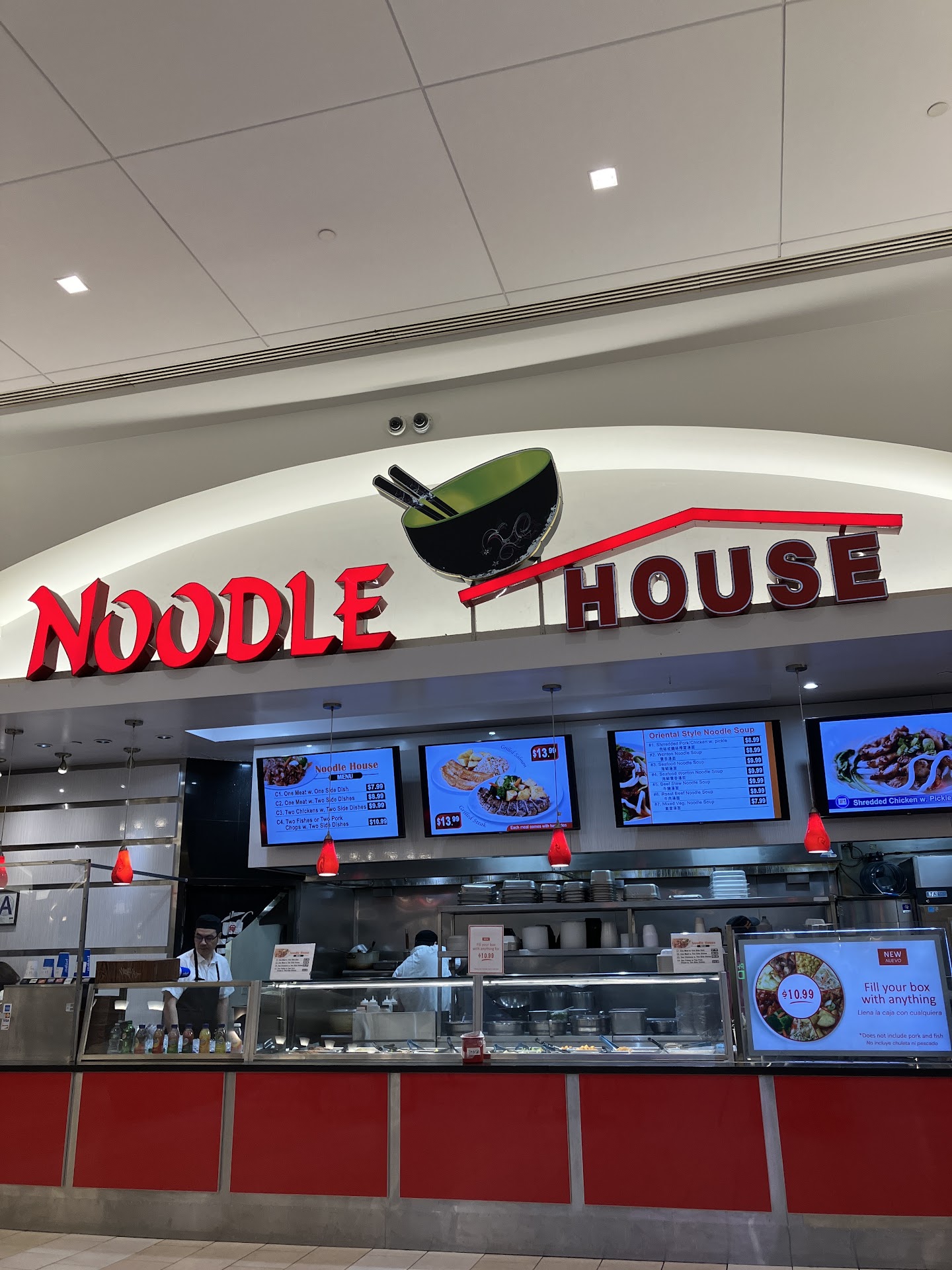 Read moreEvery time I’d attempt to make a purchase at this Noodle House I’m misled. People are commenting on how the good is good but this isn’t true. Every time I sit across from this “supposive noodle nook” I wonder why they even have the nerve to call it “ Noodle House” . If it is a “noodle house” aren’t they suppose to specialize in various types of noodle dishes. On the menu and food display they offer canned corn , mixed vegetables, rice and chickens or steak . The menu offers one meat w/ side dish, one meat / two side dishes and so forth. On the other side of the menu it shows a list from 1-8 of different oriental style noodle dishes. I hope some sees my point of view . Why call it “Noodle House”. When noodles comes to my mind especially Asian cuisines I think of ramen , or Soba noodle put together with a protein and famous Asian vegetables like cabbage , lemon grass, or Bok Choy. If this mall is going to have these variations of culturally diverse foods this store should represent the title of their fast food restaurant.This “Noodle House “ is misrepresented. There is no true authentic Asian cuisines served . I don’t believe in killing the people by selling crappie foods. Quality of food is expected when you...
