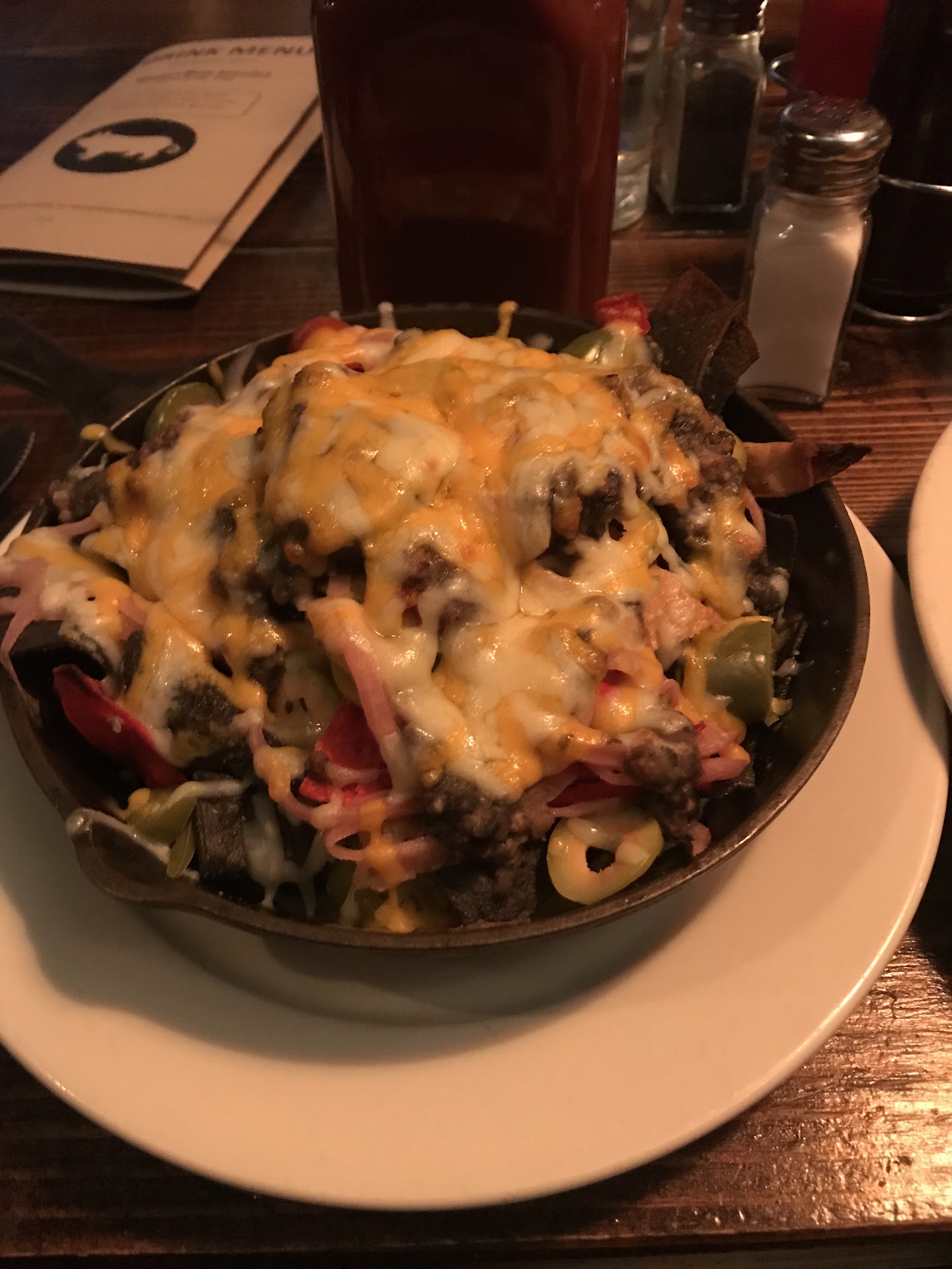 They have a wine selection locked into a grated cage on the wall, giving off a vaguely prison vibe in the super dark restaurant. So dark that I literally couldn't tell the difference between my burnt ends and my fries until I got a fork into them.
