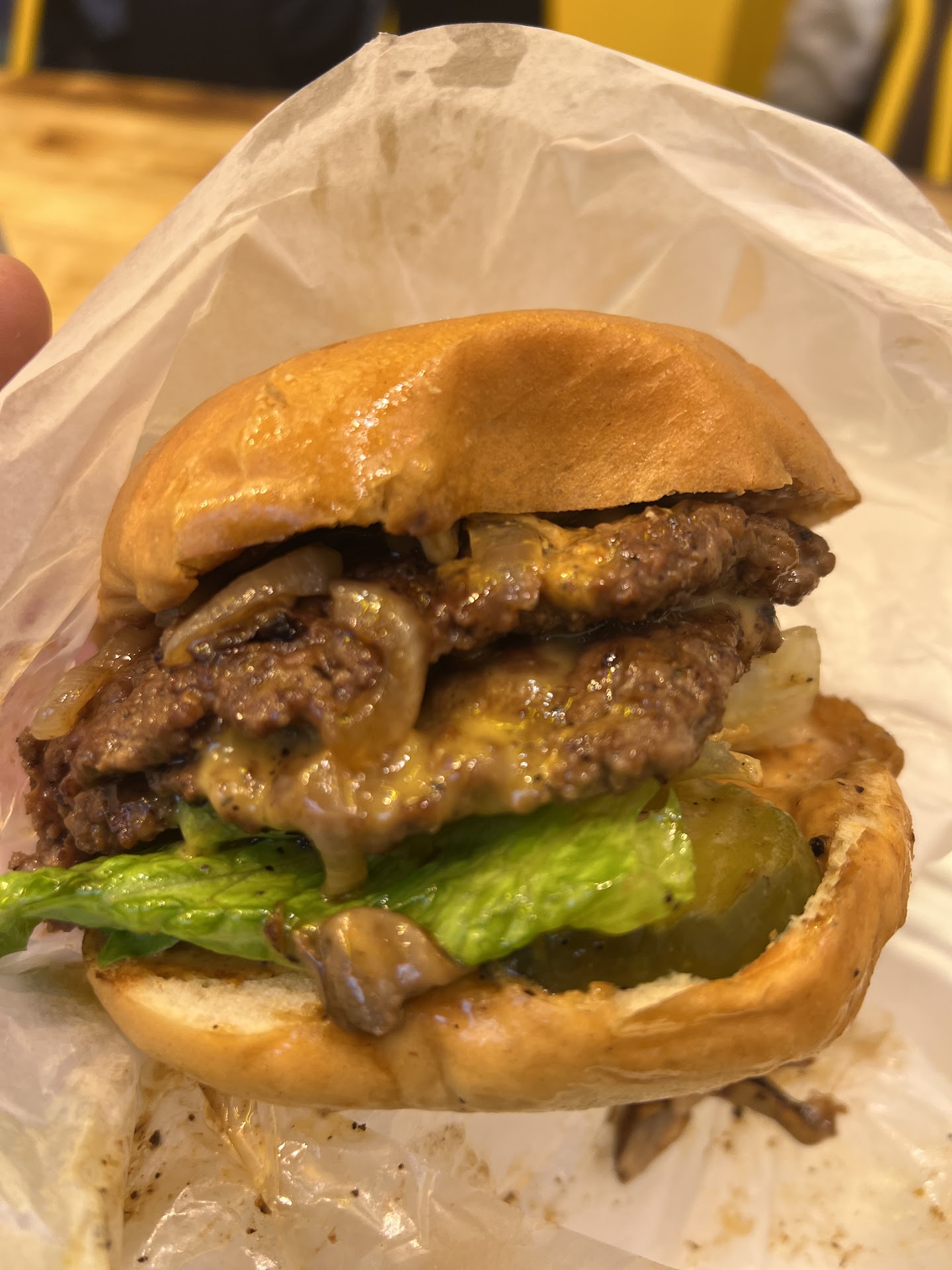 Now, let’s talk about the food. The smash burgers are next level! The patties are perfectly crispy on the edges, juicy on the inside, and packed with flavor. The bun is soft and fresh, and every bite just melts in your mouth. I tried the classic smash burger with cheese and it was hands-down one of the best burgers I've ever had!