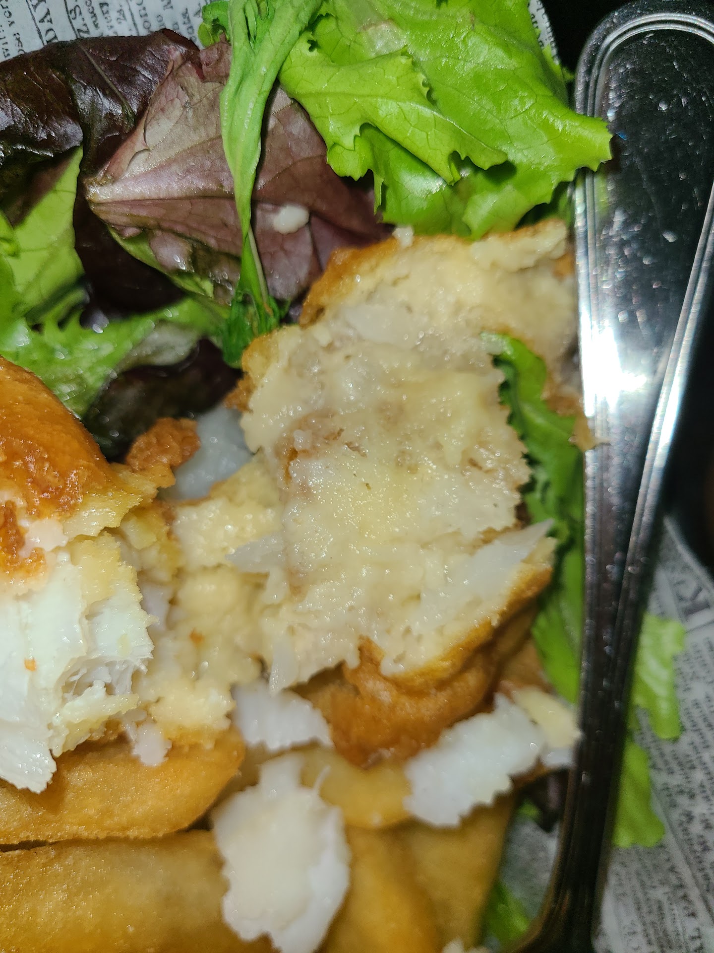 Read moreEdit/Update. The manager came back over before we left after seeing the review and berated us. She said "obviously I didn't see it in this light but I did offer to refund or replace it." I told her that I never argued that fact, but I was more offended that she clearly told me I was wrong before and that if lighting was a determination factor in correctly identifying the doneness of the batter why she didn't bother to take it to a better lit area before telling me I was wrong. She then said well you wrote quite a nasty review considering you ate it. I then directed her gaze to a once empty beer glass that I had put all the fish in so I could atleast enjoy the fries. It was already 11:30 pm and didn't want to wait again for a different meal. Since when is being honest and having pics to back it up being nasty and not honest. In all actually I probably would have not written a review if she wasn't so rude to us. They did take the uneaten meal off of the ticket and the waitress was very kind and understanding so I will give 2 stars update but you really need to learn to deal with people especially when the mistake is yours.