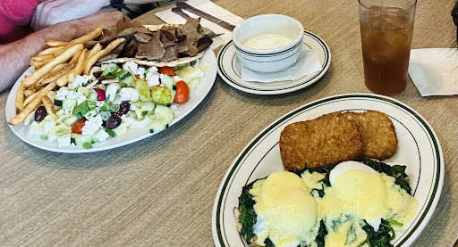 Also, by the way, their brunch was super delicious!! We had the spanakopita appetizer which was super delicious. It came with salad and a tzatziki yogurt dip, which made it even more super delicious! I had an eggs Benedict Florentine with hashbrowns and my partner had a souvlaki plate. Everything was very fresh and the service was excellent! I can’t wait to try their waffles next time my partner says they’re...