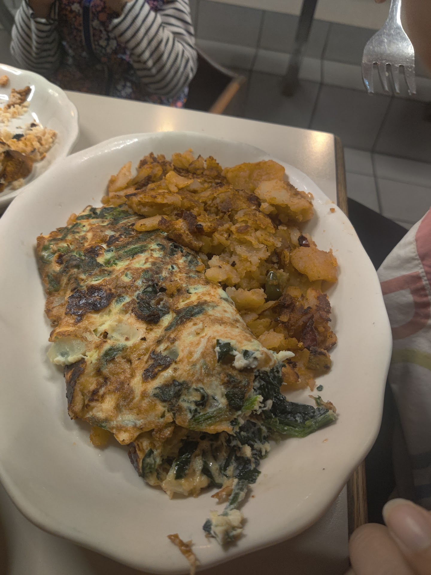 Also, the homefries were delicious, I ended up eating the tables extra homefried, which have a good mic of potato, pepper, onion, and spice.