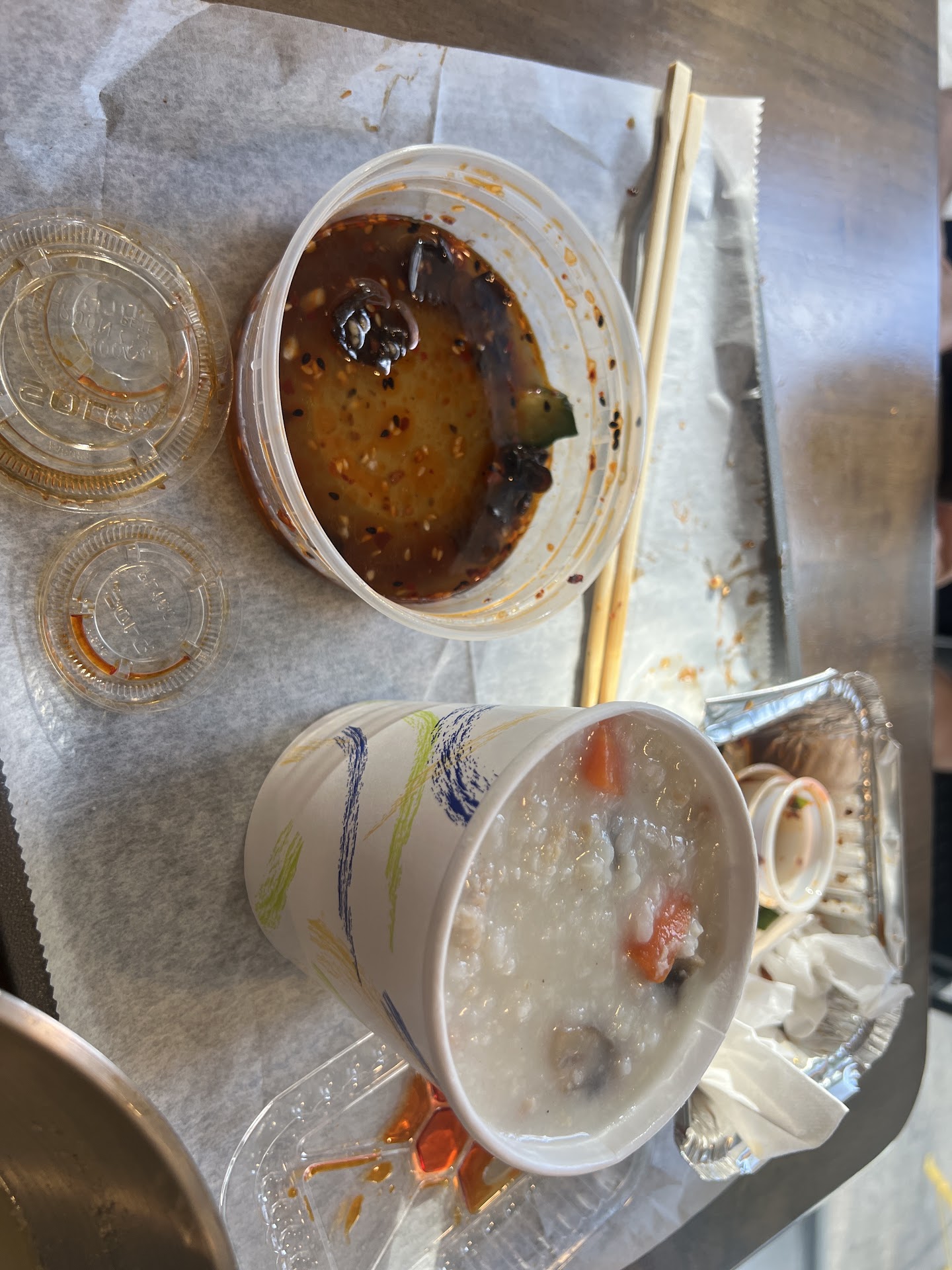 It’s a nice Chinese restaurant in the neighborhood. We tried pan-fried dumplings, Wonton Soup dumplings, cucumber and black mushroom, and chicken congee, and Sichuan cold noodles. Pan-fried chive dumplings: 5 stars. Abundant chives, fried well! Skin was crispy. Chicken wonton soup: 4 stars. I think it meets the bar. It reminds me of the same dish from home. However, I think the broth can be improved. There’s not much veggies in this except for a few boiled lettuce. Sichuan cold noodles: 4 stars. Not bad… with garlic chilly oil you can’t go wrong with it. The flavor is pretty good, but it can be improved with details as Sichuan cold noodles… Cucumber and black mushroom: 3.5 stars. This is just Ok. The dish comes in a plastic container, not a great presentation. It’s too sweet for my taste. And cucumbers are more like picked and not freshly made. Chicken congee: 1 stars. I am sorry… I was really excited for this dish, because I love congee. But it really wasn’t good. Everything is overcooked. The veggies in it feels like frozen veggies… I was very disappointed. Overall it’s a nice spot. I may comeback if I am hungry and need food, but I would not seek...