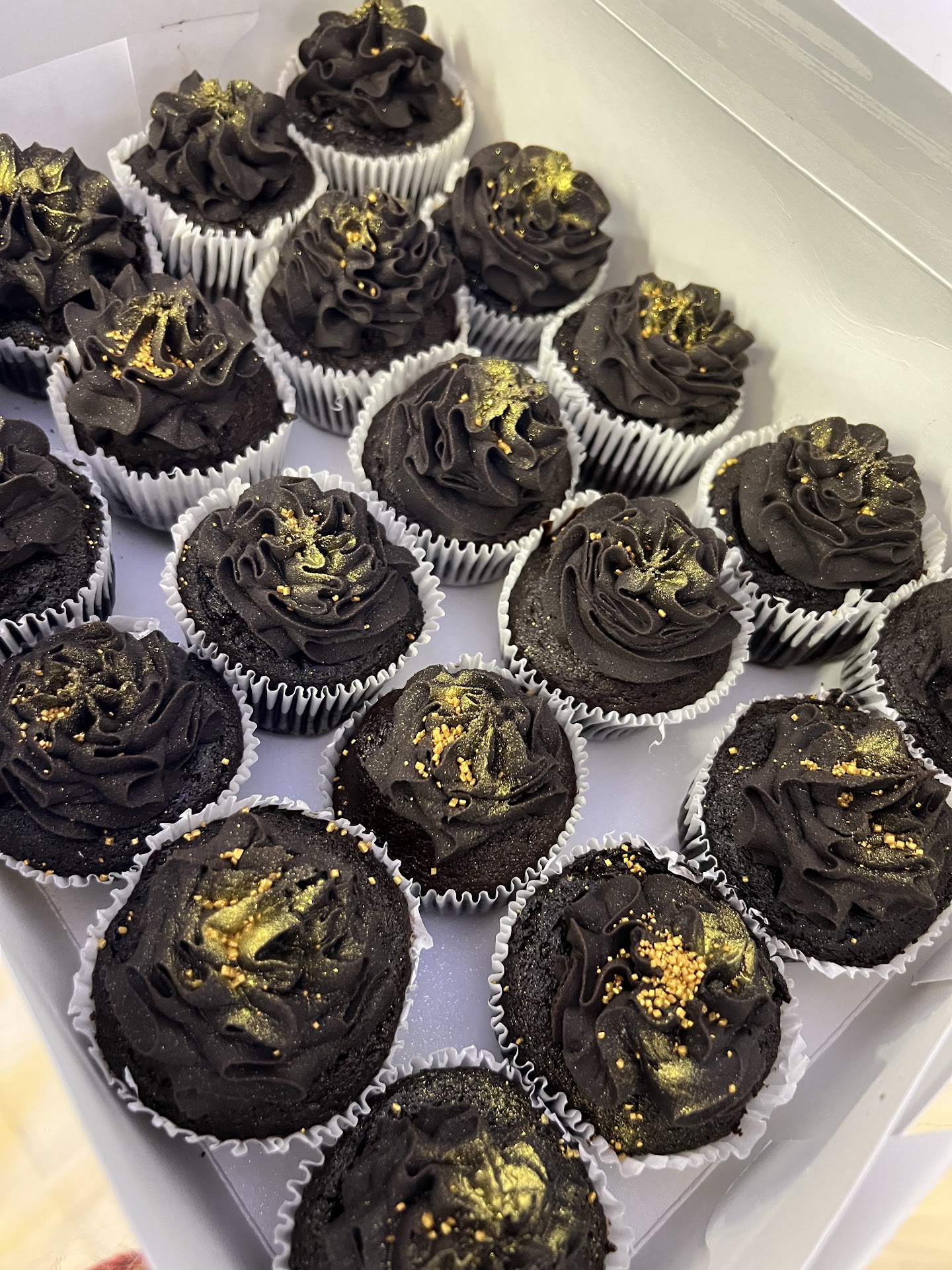 Read moreI commissioned the baker, Takia Brown, to make a cake and cupcakes for my mom’s surprise 77th birthday party and when I saw this woman created a masterpiece?! I gave her a reference, the color scheme, and flavors I wanted and she blessed me with a beautiful 3-tier cake that was purple and gold, with black and white flowers incorporated! And the cake was DELICIOUS. Not too sweet and very flavorful. She made the bottom and top tiers strawberry; the middle tier was lemon raspberry. And the cupcakes???? I never knew cupcakes could be so beautiful! And she offers delivery service on top of it! For her craft and labor, her product was worth every penny. Next time I need desserts made, Takia will be the one to call! Wishing her business nothing but growth, success, and longevity!...