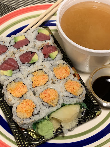 Dined in and unfortunately the service was poor- no greeting even after saying hello to the staff , this is a very small place and all the staff is right in the front, we did not feel welcome. The restaurant is not well kept and seems a bit dirty and messy, tables had food scraps from previous diners( there is only 4 tables in the restaurant and no rush hour@ the time) Ordered Shumai as appetizer and they were cold, sushi is bland and the ginger that was in sushi tray tasted old. Server never brought the drinks until he had to be reminded. The server made the sushi himself as well as the appetizers and served us the food and later the drinks with same gloves he made the food with !!!! No plates available, everything is served in to go containers- If you're ok with bland and average sushi this place is for you, I personally had better sushi from the local...