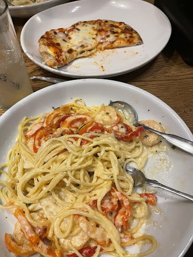 Read moreCame here last night. 10/25/25. The food was delicious we had the endless pasta deal but that wasnât the problem. My problem was our server who never introduced himself by name btw. He was brownskin, short, had a pulled back low ponytail that was puffy, and I believe he was Hispanic? Or maybe Afro Hispanic. He acted as if he was either on something or just didnât wanna be there. He was out of it. We asked him for things MULTIPLE times heâd keep returning to the table empty handed and ngl we were losing our patience and you could tell by our tone. We were visibly irritated. It took him like 20 minutes to get forks that we repeatedly asked for and by the time he came back with them our pasta was cold. He left in the middle of us ordering our food and then came back as if nothing happened and asked what we wanted. He just kept running off. He also got mad at the fact that another servers table (this server was so sweet and you can tell he likes his job. He had box braids) bought us cheesecake because I returned her phones for her that she left in the stall and he went over to him with some bad energy just hostile assuming the server took his table and the server explained the same thing I explained to him. That he did not take the table he simply told us that his table wanted to buy a dessert to thank me for returning her phone. Iâd also ask the server questions about the menu that needed clarification and heâd say âsureâ and when I asked a follow up question heâd say âsureâ. I donât know how long heâs been working there but honestly as someone who has served for YEARS myself, he ruined our experience it was like he couldnât be bothered with anything. His whole vibe everything was just off putting. I also want to add that he never bothered to picked up the trash that was piling up on our table despite seeing it. We did not tip at all because his service was horrible and we wonât be returning if heâs still there which sucks because aside from that everything else was amazing. Every other server had so much enthusiasm and personality and he was justâŚ. Blah. Your hostess was also so sweet though and welcoming I also donât know her name but she she was lightskin had short curly hair and was wearing a red shirt. Literally everyone else was a vibe besides our waiter. Food 10/10,...