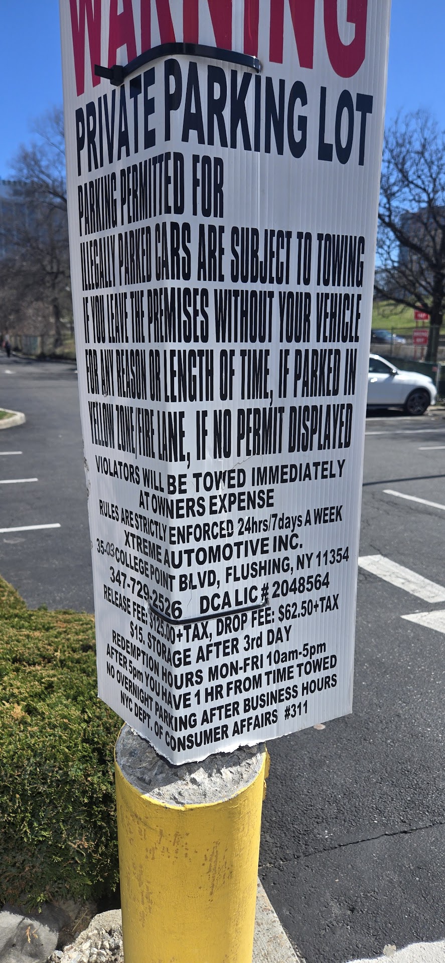 Read moreParked and walked down the block to receive my friend from the woodhaven Blvd train station so we can walk together to Olive Garden to eat unlimited pasta bowls after a long day of work. Within minutes as I was inches away from woodhaven Blvd station a man approaches me saying they’re towing my car away. I thought it was some kind of joke? Also how did he find me in the midst of crowd and abundance of people to know that was mine? And this was only minutes of me parking. Regardless I panicked and started running back to see the tow truck had already attached the car and was just waiting in the lot instead of driving off (sus). I was so stressed and begged him not to do this and he immediately laughed and called me a liar. Not everyone is a liar u know. Some people work really hard for their earnings and to live day to day. He said he’d do me a “favor” and I can pay him $125 and he won’t take it to the impound lot. I begged to let this go. He wouldn’t budge threatening he’d leave. Feeling hopeless I asked him if he takes card and instead he tells me he’ll wait so I can go to an ATM. I scurried looking for cash in my wallet (which I surprisingly had for emergencies I don’t usually carry). I had enough but now he ups it to $136 claiming taxes it’s that and change. I hand him the money and he gives me some change which also didn’t feel accurate. Before I even sat on the driver seat I look back and notice he’s gone like the wind. No receipt nothing. I felt like I had been scammed. I called my friend in the car telling her the situation and we ate at cheesecake in the mall instead as we’ve been planning this for months and it was a convenient location. The whole situation was such a let down and very suspicious let me tell you. I felt like I had been scammed, suspecting the dude who approached me and the driver were in on it together to pocket my cash. Don’t trust this...