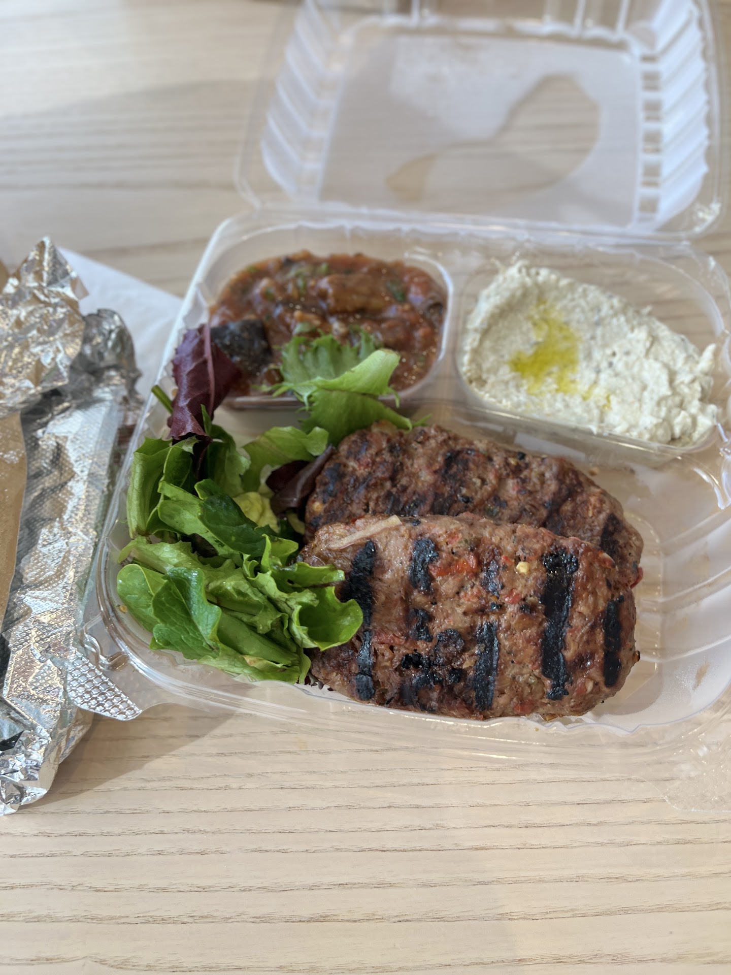 Water not provided! My friend and I decided to check out Omar's Mediterranean Cuisine around 5pm on a Monday. There is an air-conditioned seating area in the back, which can sit several parties. However, during our visit, I think they had an electrical overload, which caused everything to shut off for a second. That was enough to have a strong gas smell permeate the restaurant, so I was grateful we were almost done.