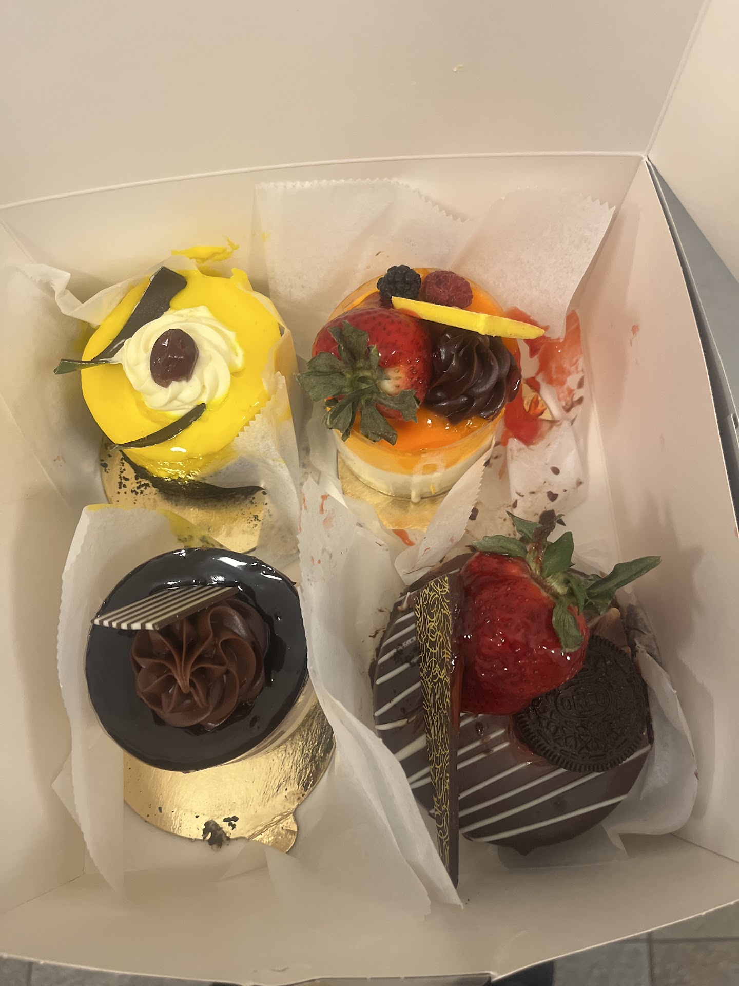 Two issues. First, I ordered one red velvet mini cupcake. I specified it clearly to the staff, since I knew there was also a regular red velvet cake piece, much bigger than a mini, with more than twice higher price. I was looking at my phone when she was packing it, and absent-mindedly swiped my credit card. Then I noticed they charged +7$ for what was supposed to be $3.5. I asked if the price tag on the mini cupcake was incorrect. My guess is that she didn't even know there were red velvet minis at all given her first excuse ("that is not a price for red velvet"), so she didnt pay attention to which red velvet I was ordering. I asked if she could refund it, then I could purchase a mini. She then pointed at the "no refund" sign on the wall. ?!! Is that really a sign for a situation like this? Isn't it for those who take a bite and ask for refund because it tastes bad? I told her I didn't need anything bigger than a mini cupcake, then she said I could take 2 cupcakes as they were about the same price. (I just said I didn't want a bigger portion.) It's $3.5 vs $7.5 - I would've just left without asking more if she acknowledged a possible mistake on her end. "sorry for miscommunication but this machine doesn't allow me to refund.." would've been nice. Secondly, it tasted so bad. The bread texture was so extremely dry and stale. The icing on top was also dry and tasted dusty. I think this cake was made quite long time ago. It had no tangy flavor unique to red velvets. In fact, it didn't really taste like anything - not vanilla, not chocolate - just sugar. It was a surprise treat for my kid who loves a cake. This was a rare occasion she had two bites and said no to the rest. They went to...
