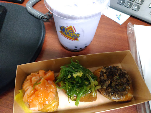Ā Ā Ā Read moreThe food was really good. I had a Mushroom, a Salmon, and a Seaweed Tofu Sushi Pocket. They are very well made and presented. The chef even lightly charred the top of the mushroom with a cooking torch, and it tasted good. Avocado was sold out... Of the three I had my favorite was the Seaweed. It had a nice sweet and savory flavor. Very chewy also. The Taro Bubble tea at 30% sweetness was delicious... But I should have paid more attention to what the server said about "dairy allergies"...