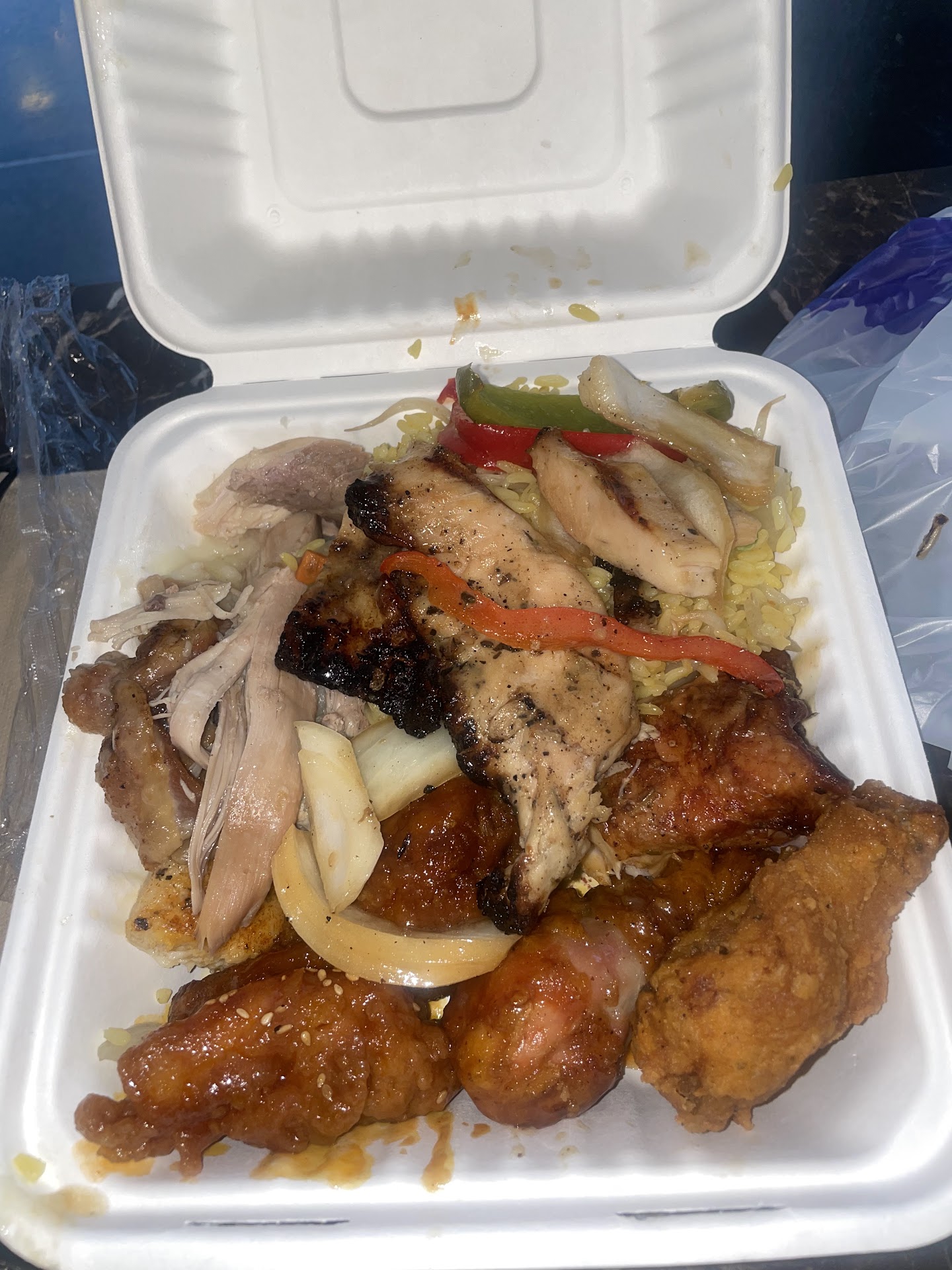 Read moreIt’s as the title calls it. It has a bit of everything for everyone : sandwiches, soups, pad Thai, pizza, burgers, an open kitchen where you can fill a plate as you please ($11 bucks a pound?! Yikes). Lunch time is hectic as you can expect it, this district has everyone going to lunch at the same time. But they are pretty efficient in getting you in and out in time to leave and enjoy your lunch. The food tastes good, I had the food from the open kitchen and I was pleased. Not too oily, not too saucy. Cooked well. I looking forward to trying to dumpling soup- hopefully I wouldn’t be disappointed. Expect pretty high Manhattan prices, crowds and hard seating. But overall it’s pretty good to grab...