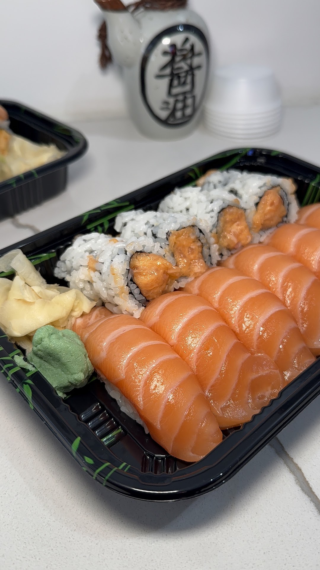 🐠 Cajun Catch With Tuna 🥭 Chaos Roll: Spicy Kani, avocado, mango topped w/ Seared Salmon, sweet sauce & spicy mayo 🍱 Salmon Lover Lunch