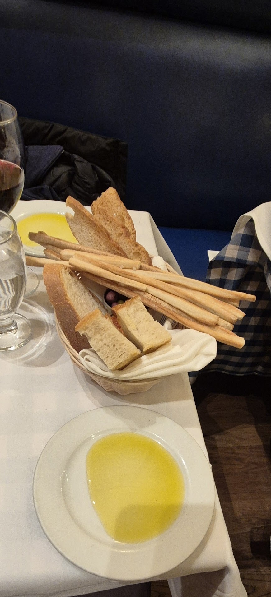 We were provided a bread bowl and plates of olive oil, a pleasant and delicious start to our meal.