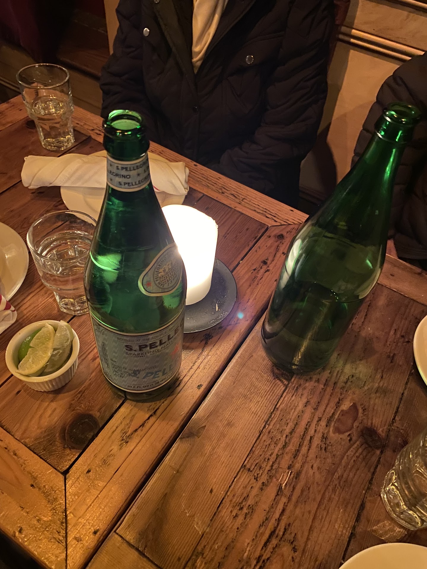 In addition to the less than ideal table, we noticed a dirty plate on our table when we sat down. I mentioned it to our server, and he said it was supposed to be for a candle that had burned down. He moved the dirty dish to the ledge right next to our table (where he also placed our water, to give a sense of its close proximity and that it practically remained on our table for all intents and purposes). He did not offer to give us a new candle or remove the plate covered it wax. It was baffling.