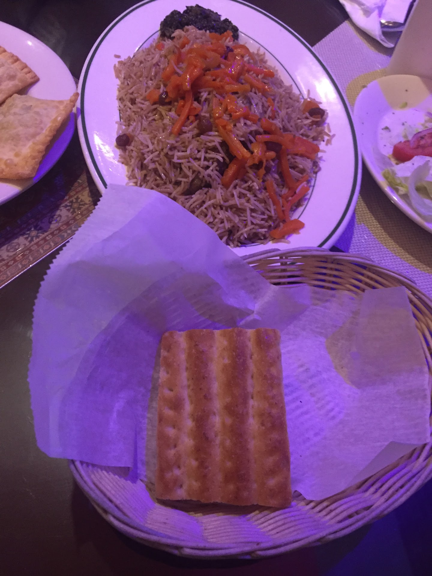 The chicken chapli round kebab was great, loved the texture and softness of the patty. (5/5) Was served with with rice, creamy spinach, and a side salad (lettuce, tomato, cucumber and purple onion)(5/5) 3 patties with the sides for $12