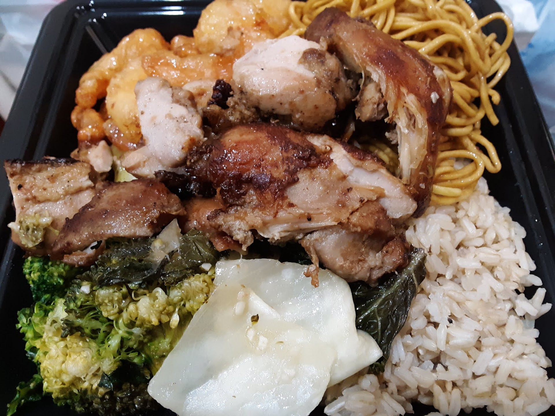 Verdict: The teriyaki chicken had little to no sauce and because of that, was dry. The super greens, which I wanted to try in order to ease the guilt of ordering greasy takeout, were wilted and altogether a little blander than I expected. The chow mein could’ve been helped with some small vegetables scattered in, but as it was, both flavor and appearance were pretty plain. Appearance of food can be plain if it tastes amazing, but it wasn’t the case here.