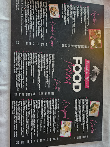 Read moreParadise Island is a restaurant on one side and a large tent covered padio with a "Tiki Bar" along the waterway between Arthur Kill on Staten Island and Perth Amboy/Harbor Town, New Jersey. Much like Marina Café, the other Tiki Bar on the opposite side of Staten Island, management thinks it's not a Tiki Bar, but Studio 54, 2025. Rather than playing music one would expect & hope to hear during the day at an establishment promoted as a Tiki Bar, Jimmy Buffet, Reggae, etc., they play the music that one presumes is played on the dance floor at 9PM on a Friday for the 20 something crowd. Of course, being situated along a marina with very expensive boats of various sizes, the mean age of the lunch clientele is 50+, although, on this day, there were younger people there, too. I joked that all they need is a disco ball. Just before we left, a DJ showed up and, sure enough, turned on the disco lights. It was 3:30 on a sunny afternoon. The drinks and meatballs & ricotta app we had were great and a very reasonable price. Our bartender was very nice & accommodating, as well. We'd have stayed...