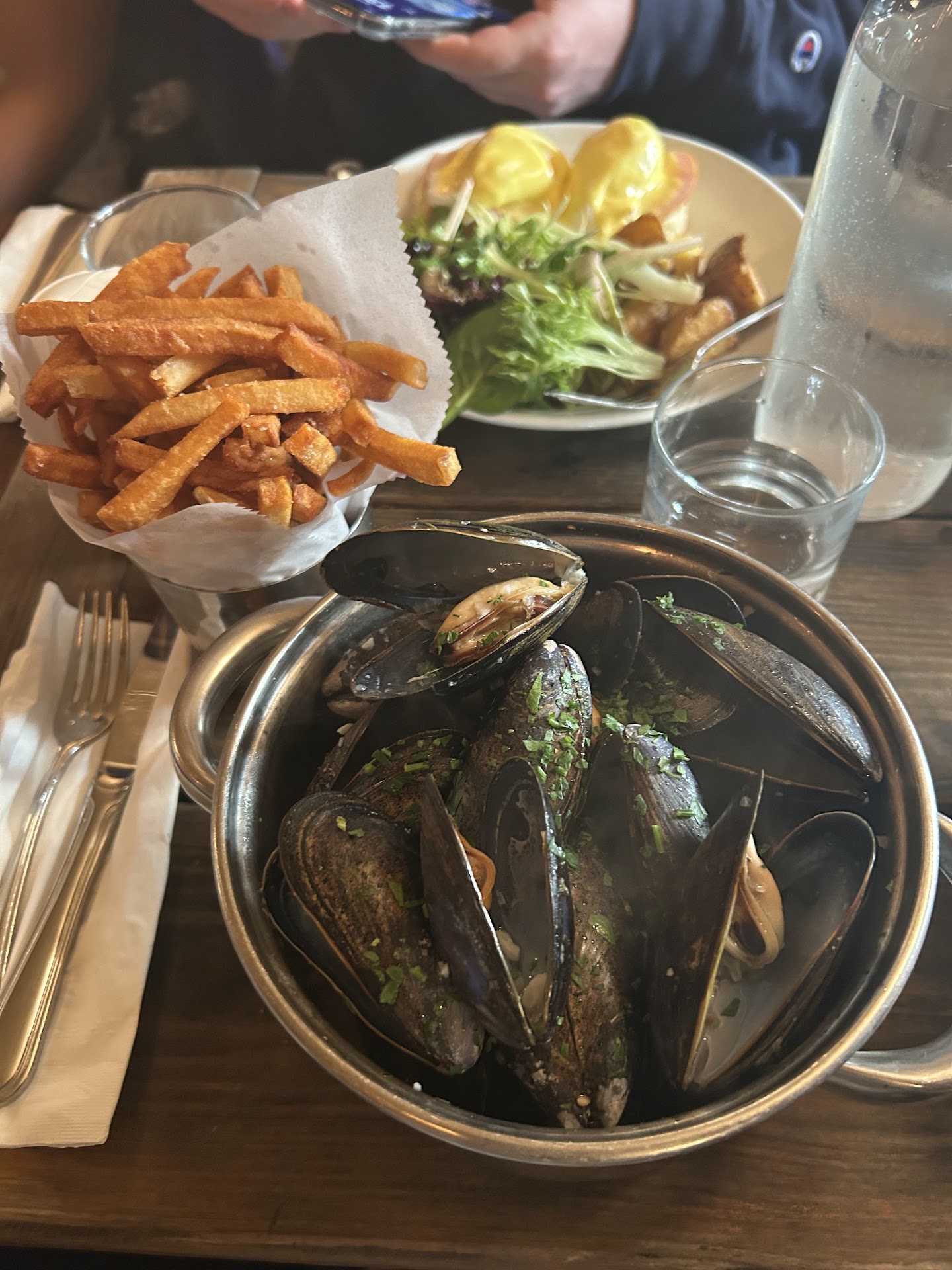 We were seated by the end of the bar and all waiters decided to stand around there to argue about who is staying after brunch. There was 3 or four servers standing there with a stack of cash ready to start counting and telling each other “Im not closing brunch” or “who will be on the floor?”. After what felt like a very long time someone was forced to “close brunch”. Seems like peace was restored so we asked if we could move to a table to have food (and also move away from where seems to be the waiters HQ). We were informed there was no food till 6pm when the kitchen reopens for dinner.