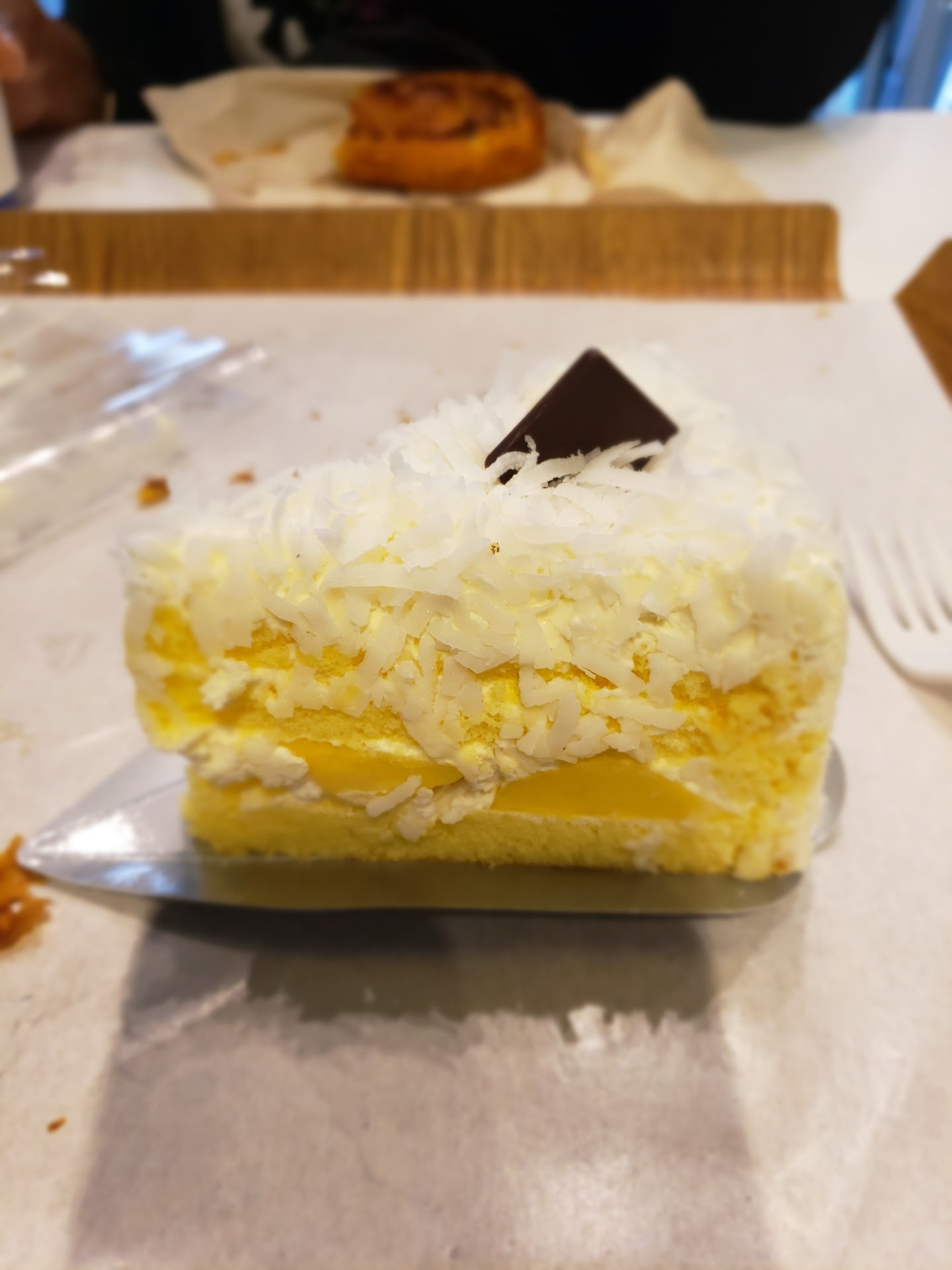 I have been dying to go here, Paris Baguette, usually, I can't find parking. Or, I just don't have enough time. Today, unexpectedly, was the day. Paris Baguette, love the name, the design of the restaurant/bakery. The presentation of so many pastries, flavors, designs and prices, is truly inviting. I was torn between trying a smoothie or coffee. The cashier said, if I like Starbucks, I will enjoy their coffee. If I like Dunkin Donuts, then I won't like their coffee.My friends selected both coffee and smoothie. We arrived around 12N. It was beautiful outside, not sure if this contributed to the emptiness, only a handful of people were present. Usually you will see lines. But, there were plenty of employees on hand, friendly if approached. I was able to practice a few chinese and japanese words, it was fun.Once we sat down, all we felt was extreme cold. The decor of the dining room, was so inviting and Chic. I'm told the coffee was good. But, the mango smoothie was the best. Well, I had a slice of mango coconut cake. It looked scrumptious, I couldn't wait to eat it. Disappointment came quickly, I asked my friends to taste a piece to see if they shared my sentiment, they did. The cake was dry. It had two very large, hard pieces of unripe mango. Not only was it not delicious, it wasn't even good. The two pieces of mango, were the pieces you would throw away. The other two pastries, almond claw, and cinnamon roll, were good. But, not worth sitting in a Chic dining room, freezing. Or, worth returning to...