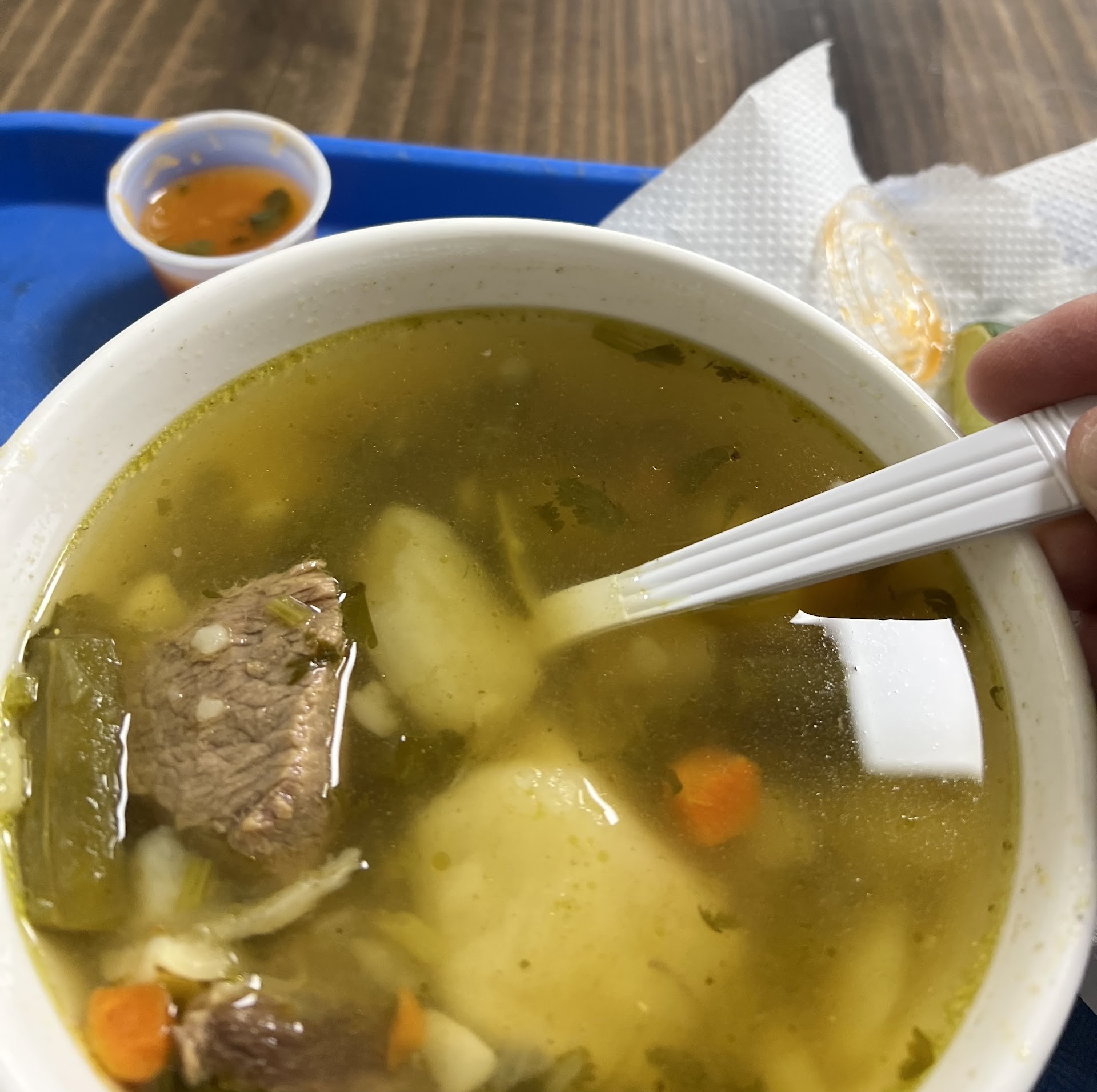 Nothing stood out as amazing. Rice was bland. Beans were not good. Worst sausage + chicharron, not bad but out of all I recall, last on list. Beef was okay. Empanadas were mediocre. Wait, eggs were good, that's it lol....... Arepa was larger than normal. So 2 pluses out of many negatives.