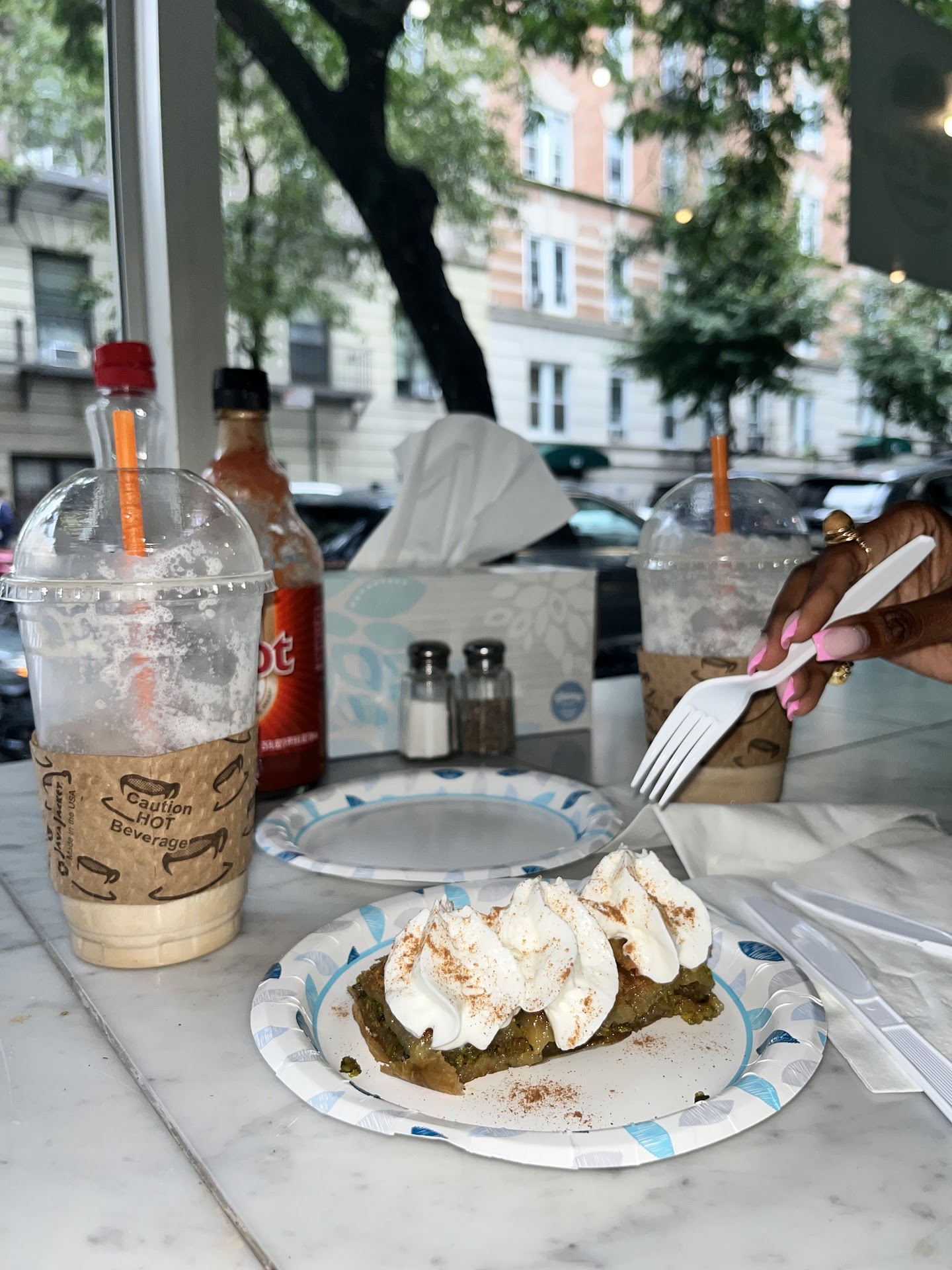Read moreMe and my lovely girlfriend stumbled upon this place by accident while on a walk in the city. We actually wanted to go to the breakfast place down the block but I didn’t check my location, and accidentally ended up ordering sandwiches and coffee from here before we even knew we were at the wrong spot, So now we had to eat there. However,, to my pleasant surprise, I found myself in a cute little shop boasting tasty sandwiches and a killer Baklava that you guys cannot miss. Don’t forget to add the whipped cream. Through all this, the main thing that shines about this place is the two awkward little owners that walk around making sure everything is absolutely okay. Their service, albeit a tad bit too attentive, is oddly warm as well. They’re just so cute and pudgy and genuinely care about their clients. And they seem like happy brothers. This is a cool place. It’s a shame we couldn’t sit outside in the little cute table because it was raining....