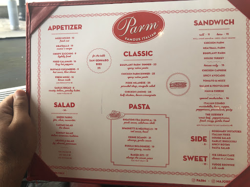 When we first arrived the restaurant wasn’t busy. Probably about 7 tables dining. When were seated the server, Justin, was pleasant and attentive. That didn’t last long. After waiting about 10 additional minutes to order just our drinks, three other tables that were seated AFTER us received their respective appetizers. Yet, we hadn’t even ordered food for the table at the same time!!! Frustration building, Justin finally came. We ordered everything as we were not risking being ignored for another x-amount of minutes. We received our app, mozz cheese/garlic bread combo… delicious! And literally about three minutes later our ENTREES arrived!!! I was in mid chew when the runner came. He wasn’t much help either because he didn’t look like he wanted to take the food back to keep them from getting to room temp on our own table. So he dropped them off and ran away. So far, not so good to say the very least. By this time I was fully aware our server was swamped. He looked visibly in disarray so I’m sure we were not the only table who received less than sub par service. With what they charge you’d think the manager would have touched our table and made sure how we were doing. Neither the server or any of management came. As a former employee from a fine dining establishment, this was deplorable and ruined our dining experience at our very first time (and LAST) time at any PARM locations. The pic I posted alongside this review were our cocktails, just about the only thing that they did right. You’ve been warned! Go at...