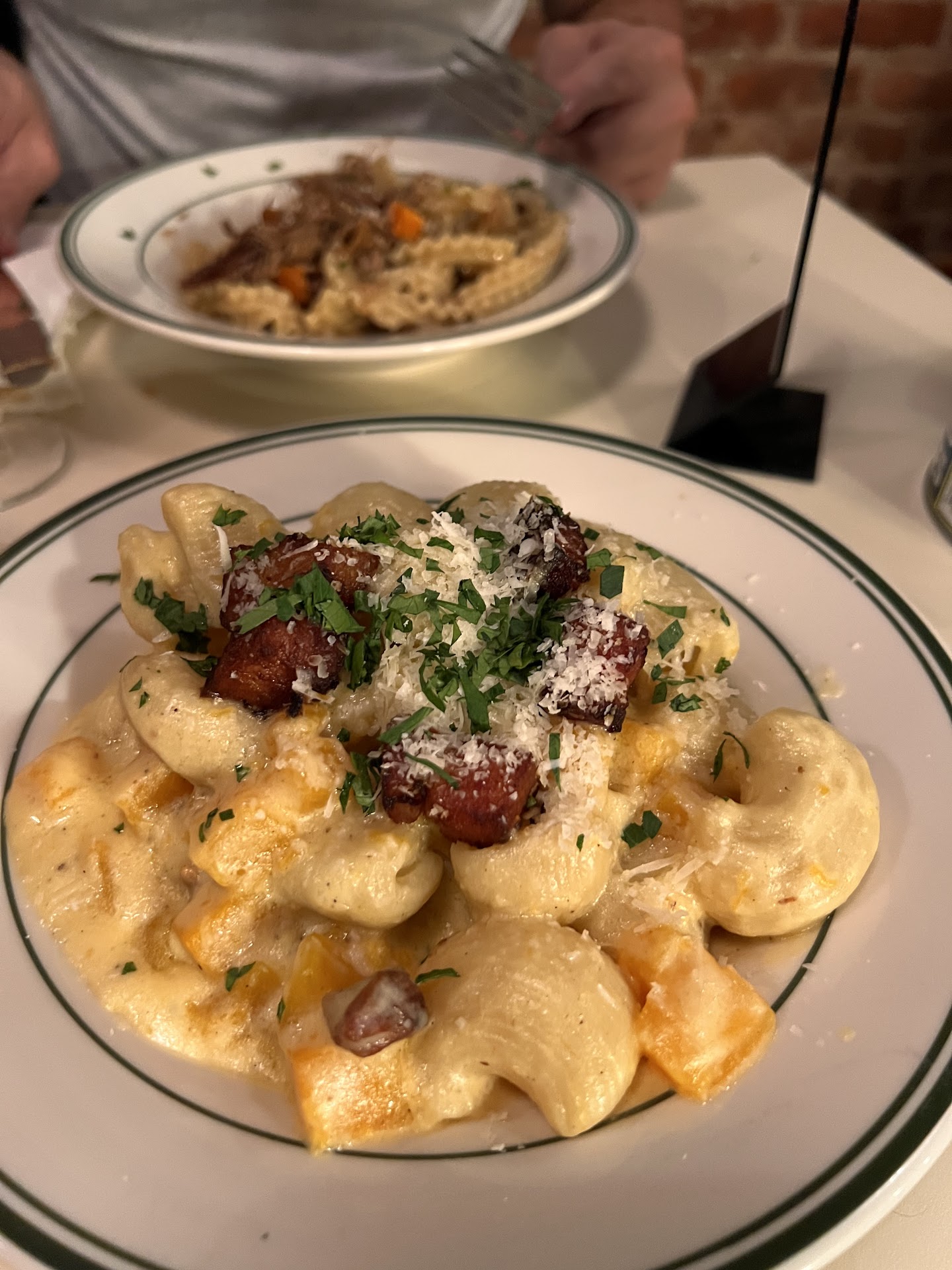 This place was such a huge let down I almost got whiplash. I absolutely love Ciao Gloria, so much so that I go multiple times a week and consider myself a regular. So I was very excited to try this spot and figured this would meet the same standard given it’s the same folks, but unfortunately not even close. First off, you pay table service prices for what is effectively counter service. We spent 130 bucks including tip between two mains, one app and two drinks at a cashier before we even sat down. The vibe feels confused - I wish they would have just decided on either fast casual or fine dining and just leaned into it and not have tried to do both. Beyond that, we were 3 people and got squeezed into a small 2 top with a stool. And sadly, the food was aggressively mediocre. My chicken Milanese was slightly undercooked and the pasta noodles tasted packed with flour. I’d expect restaurant quality pasta to “melt in your mouth” for a truly good place. A few of which in Red Hook and Carroll Gardens really deliver on. Cent’Anni on Franklin isn’t even a “wow” option but does pasta way better. Lastly, the atmosphere is almost clinical. The lights were super bright and with conversation volume it almost felt like a small cafeteria. We ended up heading to Weather Up for an atmosphere palette cleanser. I’m giving two stars because the food was fine and staff was fine, but not much more than that. I’m hoping we just came on an off day and ordered the wrong dishes.