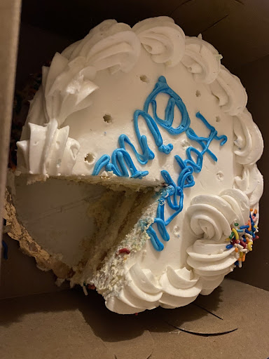 I placed an order for a 9 inch red velvet cake with vanilla buttercream for my girlfriend’s birthday and this is what I received. The cake looked how I wanted it aside from the writing. It looks rushed and I asked for gold frosting on top not yellow. When it came to trying the cake, it was terrible. It tasted like plain yellow cake, and not even good yellow cake. It was very dry, and they put a mountain of frosting (which tasted like store bought vanilla icing) in between the layers. From what I thought, buttercream should be a little softer that this frosting that they put. I’m highly disappointed with this cake. $40 for frosting with a side of cake is ridiculous....