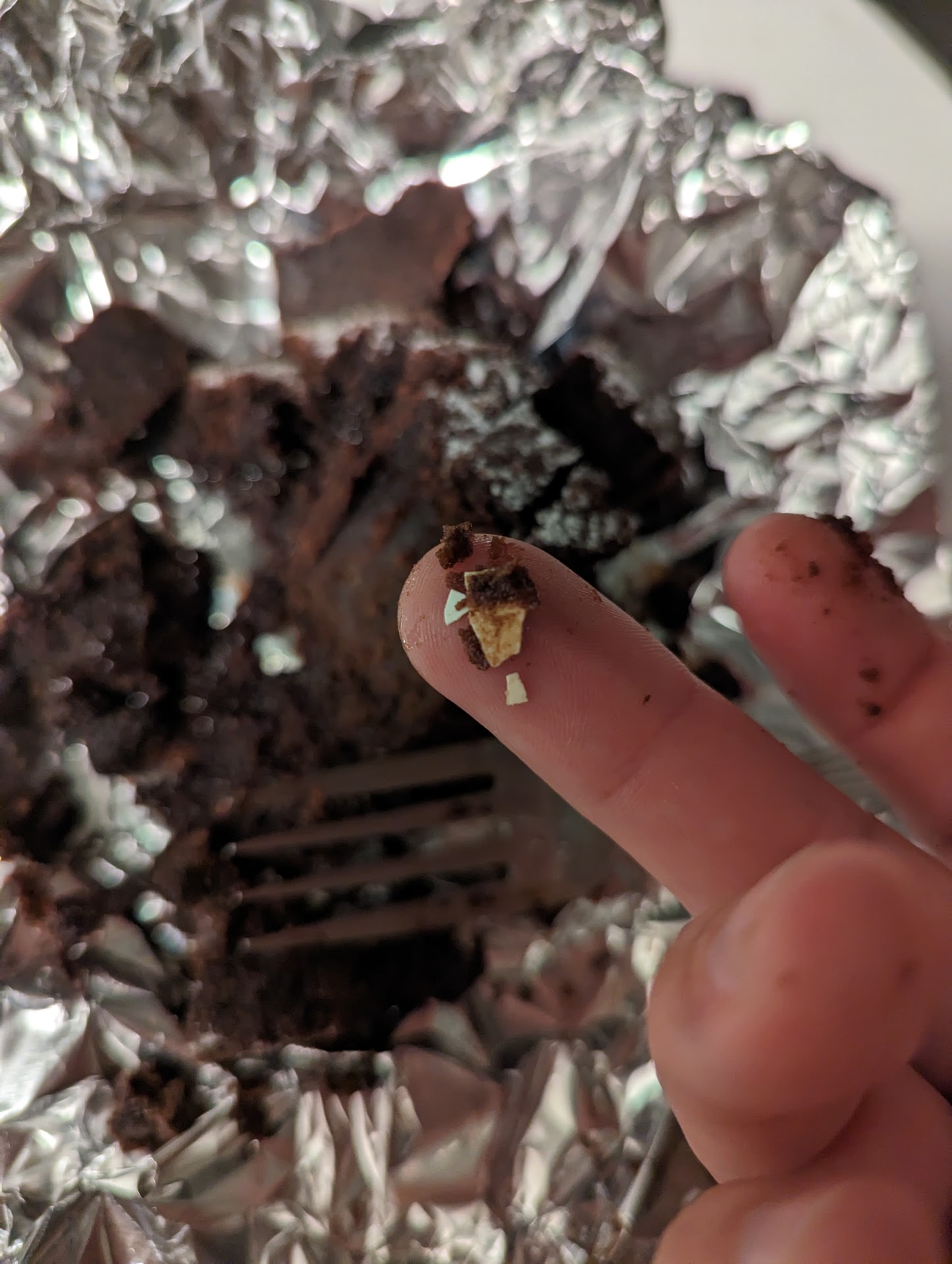 The lava cake.. was another story... On my first few bites I was a little disappointed, it wasn't particularly good (dry and lacking flavor), but then all of a sudden crunch. The feeling of egg shell between my teeth. I fish it out of my mouth and figure okay, no big deal, it happens, then two bites later another... Then another, then I poke around and find several more bits of egg shell... I did not finish the lava cake :(